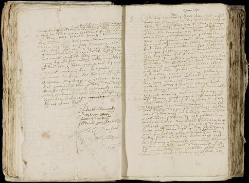 2 mette last, en contributie daerbij genesen en bij den voorn: van het tevooren van twalff guldens, waarvan deselve oock bekende ende verclaerde te alle cor¬ voldaen ende betaelt te wesen, belovende den voorn. Jan hetgeen alle naermaninge dien aengaende te sullen indemneren ende berijden, als daervan ten vollen voldaen ende gecontenteert sijnde, ende de lasten die naermaels opgestelt souden mogen worden sul¬ comen ten laste van den voorn. van het Aldus gedaen ende gepasseert te com¬ mijns notarij ter presentie van Laurens de Bruin, ende beydrick Janssen Raijmaker als getuijge en geloove hier¬ toe versocht ende geleden die dese beneffens dvoorn. Comparants ende Mij notario voorn. mede heben onderteeckent desen negenste Acht Junij Anno 1695 Antonet Minette Aan van het Lauwereij de bruijn Hendrick Janssen was Mij Present de Roy not 1695 8 2 Juni 1642 1 Op heden den tweeden junij anno 1695. Compa voor mij Dionisius de Roij openbaer notaris bij den Edelmogende raide van Brabant, in ’s Hage geadmitteert binnen den dorpe van Alphen lande ende barronnie van Breda residerende ende voor de gelooffweerdige getuijgen hiernaer genomineert, Cornelis Gerst hourvoirts soo voor sijnselven als sich mede fort ende sterckmakende voor sijne suster door sijne suster Maria Hairvoirts bagijne op den bagijnhove tot Breda, dewelcken in dier qt bekende wtter handt verhuert te hebben aen beeter de Bont, die dselve huere is accepterende, sekere stede met huijs ende schuere daerop staende hoff ende erve daeraen behoorende groot int geheel ontrent de vijff vrinden onbegres der mate, soo ende gelijck als hij ’tselve nu eenigh tijdt van jaren heeft in heere gebruijckt ende dat voor den tijt ende termijn van sije jaeren innegegaen halff meerde 1694 ende sal comen t’ expireren teijn d’expiratie der voorn. hierjaren, edoch sal der teijnde d’expiratie der drije eerste jaeren daer nogh wt scheijden mits ’tselve maelcanderen tijdelijcke opseggende, voor welcke huere den voorn. huerder heeft gelooft jaerlijckx te betalen de somme te achtendartigh gulden ende daer dat pack bove te betalen eenen Chijns van eenen gulden ende daeren boven twee loosen rogge aen den armen alhier mette gerechtigh heeren bijns sonder cort ende d’ ordinarisse lasten off contributie daerop alreede geset, als dier in de voorn Jaeren afgestelt sullen 39