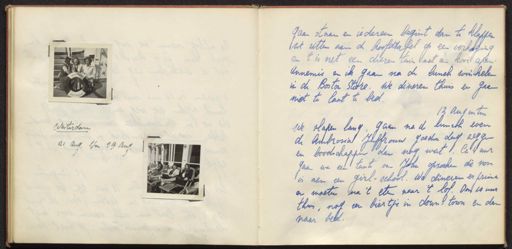 Regionaal Archief Tilburg, archieftoegang 528, Plaatsingslijst van de collectie memoires en dagboeken Tweede Wereldoorlog, Tilburg, 1940 - 1945, inventarisnummer 27, DAGBOEKEN, Dagboek Jan Franken, 20 juli-27 augustus 1946. Hij reisde samen met zijn zus Annemarie door de Verenigde Staten, op uitnodiging van Amerikaanse piloten die zij in 1944 hebben geholpen met onderduiken in Tilburg en transport naar velig gebied, inclusief foto's, 1946