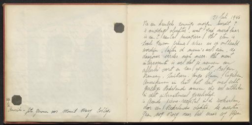 Regionaal Archief Tilburg, archieftoegang 528, Plaatsingslijst van de collectie memoires en dagboeken Tweede Wereldoorlog, Tilburg, 1940 - 1945, inventarisnummer 27, DAGBOEKEN, Dagboek Jan Franken, 20 juli-27 augustus 1946. Hij reisde samen met zijn zus Annemarie door de Verenigde Staten, op uitnodiging van Amerikaanse piloten die zij in 1944 hebben geholpen met onderduiken in Tilburg en transport naar velig gebied, inclusief foto's, 1946