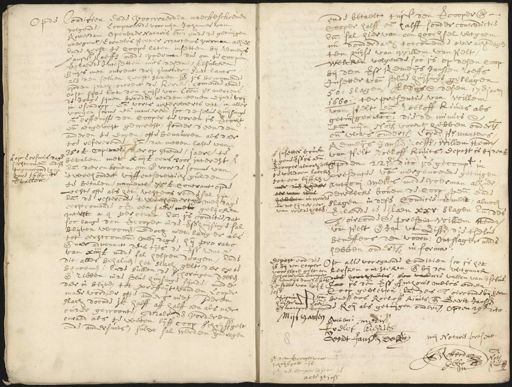 Op de conditien ende voorwaerden naerbeschreven volgende, compareerde voor mijn Johannes van Rotterdam Openbaer Notaris etc. ende de getuijgen naergenaemt Cornelis Peeter Martens voerman alhier, Ende heeft te coope laten insetten bij remeijs Janssen Voeffs mede voerman die om te coopen verclaerde intesetten mits desen, alsulcken huijs met ontrent drij quartier haet lants als denselven heeft staen ende is bewoonende op den path ontrent de kercke, comende aen de Oost sijde tot den huijse van Cornelis Pr. Mertens de jonge sijnen broeder aen den eenen eijnde vrij in Osendrop ende vorts achterwaerts uut in aller voegen forme ende manieren soo deselve huijsinge ende erffenisse den cooper tevoren is vercocht ende aengevest geweest, sonder d’een den anderen te engen ofte benauwen als daer¬ toe refererende, ende dat metten laste van 350 £ capitael daerop staende, jaerlick te betalen met XIIII £ eens voor interest Ende daerenboven om ende voor de somme van tweehondert vijffentsenentich gulden te betalen, namentl. 75 £ contrant opde veste ofte als het vestens reede sal sijn Ende de resterende twee hondert gls. meij dag eerstcomende over een jaer met gelijcken interest a 4 per cento. Ende is conditie dat soo lange den vercooper in de voors. huijsinge sal blijven woonende, edoch niet langer als tot eerstcomende meijdage, hij pro rato ende naer advenant des tijts de voors. rente van XIIII £ mede sal helpen dragen, ende dit alles behalven het slach gelt daerop te benoemen. Ende sullen de schoringen deelen ende ribben in deselve huijsinge sijnde, mede daerin blijven tot proffeijt van den cooper maer vorder ofte anders niet, ideren slach doende ik halff aff halffoen als naer onder gewoonte, maer den vorderen onraed als te weten lijffcoop schrijffgelt ende andersints, sulcx sal werden gedragen vervallen. op Corsmis dage¬ ijerstcomende in desen tegenwoordigen jare 1660 te ende betaelt tusschen den vercooper ende cooper halff ende halff sonder contradictie Ende sal hier van een hoochsel uutgaen nu donderdach toecomende over acht dagen ten huijse van Willem van Pelt welcken volgende soo is op desen coop¬ bij den voorsz. Remeijs Janssen roeffs insetter van deselve huijsinge geslagen 50: slagen Aldus ende desen 17en januarij 1660 ter presentie van Willem van Pelt ende Roeloff Kivits als getuijgen etc. die de minute ende ende mijn Nots. voornt. hebben onderts. ende was onderteeckent Cornelis Pr. Martens Remeijs Janssen Roeffs, Willem Hendrik van Pelt Roeloff Rivits, depost is bij den # Op den 22en dito is gecompt. in presentie van de naergenoemde getuijgen Anthonij Melis mede voerman alhier, dewelcke boven de coop penningen ende slagen in dese conditie vermelt, alnoch verclaerde te slaen XXV. slagen Ende des Toirconde ende present Willem Hendrik van Pelt ende Jan van Lissen die ’tselve beneffens den voorn. ontslager mes hebben onder ’tselven in forma. Op alle voorgaende conditiën soo is het kersken ontsteken ende bij den uutganck des hoochsienlis, sine vande vallen van 't selve Soo is den voorsz Anthonis melis aenden coop gebleven, ende des ’t oirconde bij hem beneffens Roeloff Rivits ende Gerrit Janssen de roij als getuijgen ondert. Op den 29en dito Antoni Melis Roelof Kieriusz Gendt Janssen De Roij mij Notaris present. J. Rotterdam No. heeft den vercooper voor schrijffgelt I £ 1660 Pub. m St. den Cooper ad idem I £ acte Sint-10 s. depost eodem die is bij den cooper voor slach-gelt ten behoeve vande vercooper ende remeijs Janssen bet. de somme van lxij £ 10 s. Signum van huijsen va Coen¬ Pr. martens vercooper Mijs Jansen # insetter boven ’t gene voorss. is aende vercooper alnoch belooft te voldoen laecken tot een lijffken naer dien huijver eer vrau wal hebben in weerde na dat hij daer eer van wilde hebben.