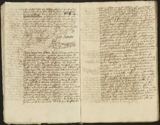uijt crachte deses sal werden gedaen & Ericht vader want als na rechte, Aldus gedaen ende gepasseert binnen Tilborgh ten presentie van D'Hr. Adriben geschrepen ende Matheus Nieukerck out Schepen & Commies alhier beijde als getuijgen hier toe versocht Die de prothocollaire minute deses beneffens den Compten. & mij nots. voorn. mede hebben onderteeckent desen 3e. septemb. 1695, Wm. Bernage J. van Hen. Velm 1695 M: Nieuwersz quod Attestor 1695 H:V Loon Nots. publ: ƒ: C: 16 x 3 x 95 ƒ 8 Inden naeme des Heeren Amen. Compareerden voor mij Arnold: van Loon openbaer Notaris bij den Ed: rade van Brabant, in s'graven„sage geadmitteert, binnen de Heerlijckht. Tilborgh residerende, ende de getuijgen naegenremt in eijgene persoonen den Eersamen Hendrick Janssen Cantvenbergh, & d'eerbare jemeken jacobs de Roij echte lieden alhier aen Velthoverse molen woonende, mij notario wel bekent, den voorsz: Cauwenberch gesont van Lichaem, gaende gestaende, ende de voorn: jemeken sieckelijck te bedde liggen; nochtans beijde haer verstant, memorie, ende sinnen, wel machtich ende volcomentlijck gebruijckende, soo sulcx opentlijck bleeck, Dewelcke overdenckende de seeckerst. des doots, & d onsekere ure van dien Hebben daeromme met voorbedachten rade, ende mutueerconsent, sonder inductie van ijemanden, vijf hennen eijgen wijen wille, gemaeckt, geordonneert, ende geslooten, soo sij doen mits desen, dit haer tegenwirt die „ testament, lesten p vijttersten wille, invoegen ende manieren hier nabeschreven volgende: Eerstelijck hare zielen, nu & soo wanneer die uijt henne sterffelijcke lichamen sullen comen te scheijden inde grondeloose berinherticheijt van Godt almachtich bevelende, & henne doode Lichamen eerlijck & Christelijck begraven te worden, Comende voorts totte dispositie van henne tijdelijcke goederen, soo verclaerden sij testateuren uijt conjugale Lieffde, die sij malcanderen sijn toedraegende, dien den anderen den langstlevende van hen beijde wedersijts, te laeten ende te maecken vrije heer te meester, ofte meesterste van alle ende jegelijcke henne gesamentlijck goederen, soo haeffelijcke als erffelijck, schulden, actien, & crediten, hoedanich die sijn ofte genoemt connen worden, waer te op wat plaetsen gelegen, geen uijtgesondert, ende die d'eerstafflijvige met sijne ofte hare doot eenichsints sal comen te ontruijmen ende achter te laeten, omme alle deselve na doode van eerstafflijvigen bij den Langstlevende in vollen eijgendom aenveirt ende beseten te worden, die te vercoopen, verlieneren, steiren, transporteren, belasten ende bescharen, ende daer mede te doen, soo de Langstlevende goetduncken & gelieven sal, sonder tegenseggen van imanden, instituerende & nominerende sij testateuren malcanderen d'een den anderen den Langstlevende van hun beijde wedersijts, int gene voorss: is, tot haren eenigen te universell erffgenaem, met vollen rechte van institutie mits desen, tgene voorsz staet verclaerden sij testateuren te wesen hennen testamente, lesten te uijttersten wille, die hij begeren dat na hare doodt sal werden achtervolght, stadt grijpen, ende sijn volcomen effect sore teren, t'hij bij forne van testament solemneel, codicille, gifte ter saecke des doodts, onder de levende of andersints, soo & gelijck t'selve alderbest sal connen bestaen, goet ende van waerde wesen, niet tegenstaende alle ende