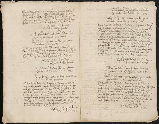 betalen, waer voor die voirschreven personen hebben sullen Inden eersten Ariaen Michielssen sal hebben haeren besten rock, Ende Jenneken Joosten, het roy wullen hemde met het wambaslyftken, ende de resterende dingen sullen die voirscreven persoonen enen diep deylen. Aldus etc. Adriaen Goyaerts Testes Willem Janssen Testamentum Sebastiani Judoci Jois Tigrotatis et Joannee duis uxoris. Actum Anno Domini 1612. 17. Maij hora nona matutina in domo predict. Inden naem etc. Bijden etc. Maecken zy Testateuren voirscreven deen den anderen, reciproce allen die haeffelijcken goederen, om haeren eyghen ende vryen wil mede te doen zoo dat den lancxtlevende gelieven zal. Alle etch Pieter Janssen Testes Henrick Jan Jacobs Testamentum Antonii Adriani Antonii agrotatis et Petrouille uxoris sue. Actum Ao Domini 1612. 25. Maij hora decima. matutina in domo predictorum. Inden naem etc. Byden etc. Maecken zy Testatoren voirscreven inden eersten maeckt Thonis Adriaen Thonissen Peertien zyn wettighe huysvrouwe alle zyn goederen haeffelyke ende erffelycke haer leeft daech lanck te besitten, ende nae die doot sullen die voirscreven goederen wederom comen totter gerechter erffgenaemen daer zy affgecomen zyn, waer teghen Peerren syn huysvrouwe wederom maeckt alle haere haeffelycke goederen haer toebehoorende, inde voorgenoemde maniere te besitten, Alle etc. Jan Goyaert Ariers Testes Henis Joost Janssen. 0 Testamentum Jois Wilhelmi vanden Loo egrotantis, ende Neelken uxoris sue¬ Actum de Domini 1602 ultimo Augusti horam undecima matutina in domo predict. Inden naem etc. tyden etc. Maecken zy Testateuren voirsch d'een den anderen reciproce, alle die goederen die den eerst- afflyvighe achterlaeten sal, den lanckxlevende, dat den lancxtlevende die voirs. goederen in deser voeghen sal besitten te weten dat den lancxtlevende gheen goederen en sal moeghen veralieneren oft vercoopen sonder consent der vrienden, ende dat alleen om die schult mede te betaelen. Ende oft het gebeurde dat ennighe vande kynder ongehoorsaen waeren, sullen vanden lancxtlevende met eenen ouden grooten moghen uutgemaeckt worden, het welck sal comen tot profyt der gehoorsaemer kynderen Alle welck etc. G Simen Geridt Simens Testes Jan Hermens Heyst Testamentie Cornelis Jois Francisci grotantis et Catharina uxoris me Actum de Domini 1612. 27. Septemb. hora quarta pomeridiana in domo predictorum etc. Inden naem etc. Bijden etc. Maecken zy Testateuren voirscreven d'een den anderen reciproce die helft van alle het goet, dat den lancxtlevende daer synen eyghen wil mede sal moeghen doen, ende d'ander helft voor het kyndt, ende oft het gebuerde dat het kyndt quaem te sterven voor den lancxtlevende, so sal den Lancxtleuende alle het goet hebben synen wil mede te doen. Alle etc frans Joosten Testes Thonis Claessen.