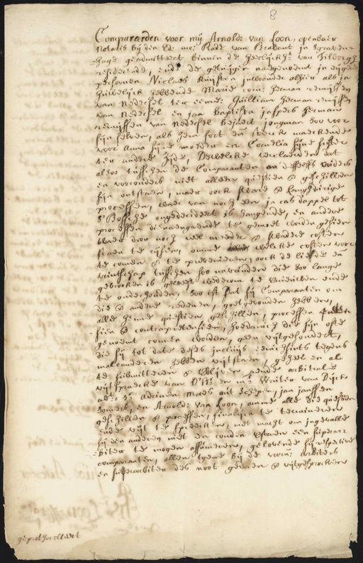 geprothocolleert Compareerden voor mij Arnold: van Loon, openbaer Notaris bij den Ed: mo: Rade van Brabant in sgraven¬ hage geadmitteert binnen de heerlijcks-t van Tilborgh residerende, ende de getuijgen naegenoemt in eijgene persoonen Niclaes Kuijsten inwoonder alhier als in huwelijck hebbende Marie corn: Herman remijssen van nedersel ter eene: Guilliam herman remijssen van Nedersel en jaa baptista jaspers herman remijssen van nedersel bejaert jongman soo voor sijn selven, als hem fort ende sterck maeckende voor Anna sijne moeder en Cornelia sijnde suster ter andere zijde, Dewelcke verclaerden dat alzoo tusschen de Comparanten om desselffs ouders en voorouders niet alleen questien ende geschillen sijn ontstaen, maer oock sware ende kanghdurige processen, waer van noch een in cas d'appel tot s'Bossche ongedecideert is hangende, en andere processen dienaengaende te gemoet worden gesien waer door noch veel meerder ende schadere costen staen te rijsen, omme alle welcke costen voor te comen ende te prevenieren, oock de liefde ende vrintschap tusschen soo navandere die soo lange gebrooken is geweest wederom te Enieuwen ende te onderhouden, soo ist dat sij Comparanten om die ende andere redenen, goetgevonden hebben, alle henne questien geschillen, processen pieten sien ende contrapretensien, hoedanich die sijn ofte genoemt connen worden, geen uijtgesondert die sij tot date deses incluijs eenichsints tegens malcanderen hebben uijtstaen, geheel en al te submitteren ende wlijver aende arbitrale uijtspraecke van d' Hr. en mr Wouter van Dijck ad:t, 3:e adriaen Maes out schepen, jan janssen somers, en Arnold: van Loon, omme alle die questien geschillen ende processen, finalijck te termineren ende uijt te spreecken, met macht om ingevalle sij den anderen niet en conden verstaen een superar¬ biten te mogen assumeren, gelovende sij respective comparanten, allen tgene bij de voorn: arbiters en superarbiten des noot gedaen ende uijtgesprocken