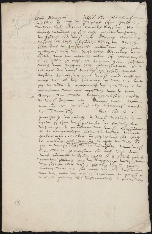 Dno Notario Alsoe Mr. Lambrecht possins. inde naem van peryntgen syne huyszen dochtere wylen Adriaen Cornelis Keysers, hem feytelen vervoerdert, op synen eygen naem, te verhaeren de goederen by den voors. Nylen Adriaen Cornelis keysers, ende wylen Elisabeth Diercx van Sprang syne Ierste huysvrouwe metter doot geruymt nyettegenstaen dat desselffs Adriaens naer kynderen, daer toe notoirl. mede syn gerecht, en dat sy tselve: hen recht, aen Johanna henne susteren wettel. voor schepenen hebben getransporteert, Ende dat oijck de voers. possius dyen volgen, heeft deselve teuncken, met haere voorss. mede erff ge¬ naemen doen oft laten Induceren, om daer over met hem te treden In compromis vande questien ende proceduere, daer over opgestaen voor den heeren schepenen der stadt 8 hertighembsche, tuschen de voors. Johanna als Arrestante ter wäre, en hem vossins als gearresteerde ter andere syden Soe sal v L. gerichtel. versoecken den voors vossuwen, in eynde hy syne voors. pretense en feytelycke verhueringe, in preiudicie der voorss. herspendentien ende de naergevolghde submissie van dien, t'ourecht geattenteert, costeloos en schadeloos sal hebben te casseren, aff, doot, ende te nijet te dien ende van gel. meer toe doen gaan te vermyden, Oste dat andersaten de voorss. Arrestante, genootsaect sal wesen uuyt de voors. submissie te scheyden, gel. sy in sulcken gevalle daer van wede in cas van weygeringe van dyen, daer vuyt scheyt midts desen, Ende dyen volgende haer beclaet daer ouer sal moeten doen, aen Justitie daer van, ende vande costen daeromme te gerysen U.L. sal gelieven wel vuytdruckel. te protesteren