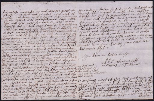 het welcke versoecke mij net deerste post te schrijfve, de vrou van ginckel gaet noch al en Een met haer in geen kleijne bekomerin, door aldeese tijdine, was gereesolveert deese weeck noch met haer naer den hach te gaen, maer dewijlle het nu heel aent doeije is, ben half van reesoluijsi het noch met haer hier te blijfve om de koste en moeijlijckheijt vande reijs vermidts de vaerte over al toe sijn, te ontgaen, hoope wij haer kraem noch hier sulle konne wt houde t men seijt dat de keurvorst van brandenburch toooon man int lant van kleef sente, te wttrecht wort voort gemeen ock niets gedaen daer sijnse seer misnoecht overt weijnich schrijfve van den heere vander hoolck daer om sijden heere schade hebbe gekomiteert om voor deese winter naer den haech te gaen en sulle hem noch met beurte