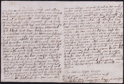 van hier omde vrou van ginck niet alleen te laeten die nu seeven weecken van dach tot dach heeft gemeent te kraeme en gaet noch al so lange alst godt belieft, sij is nu veel beeter alse geweest is, ick ginck de voorleedene weeck wel met schroom Een keer naer wttrecht doen, voorleedene saterdach is de Elexsi bij de heere Edelen gedaen, en den raetsheer nieupoort den heere van schoonou we gossom en onse neef van wellant int Eerste lidt gestelt sij moogen wel van ge luck spreecken sitten sacht en wel, dit is met Een paericheijt van steme geschiet so dat het schijnt de gemiskontenteerde heere haer be¬ docht hebbe siende dat sij niet koste te weech brenge haer hebbe bij dandere gevoecht, gisteren is hier den heer overste bremt die in den haech heel kranck heeft geleechge noch seer swack sijnde gekoomen en deese merge sijn reijs naer sijn huijs gevordert hij sietter heel deesolaet wt en was noch seer pijnlijck weet haest niet hoe hij de reijs so kan verdragen, is niet wel te vreede dat men in hollant sijn broeder heeft voor bij gegaen, so beklaecht hem seer over den heer van obdam, nu wenst hij wel so der noch ge worfve mocht worde gelijck men seijt, dat sijn broer op de provinsi van wttrecht door