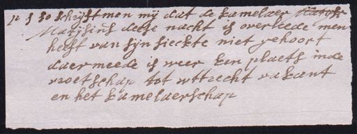 ps so schrijft men mij dat de kamelaer Meteck Matijsius deese nacht is overleede men heeft van sijn sieckte niet gehoort daer meede is weer Een plaets inde vroetschap tot wttrecht vakant en het kamelaerschap¬