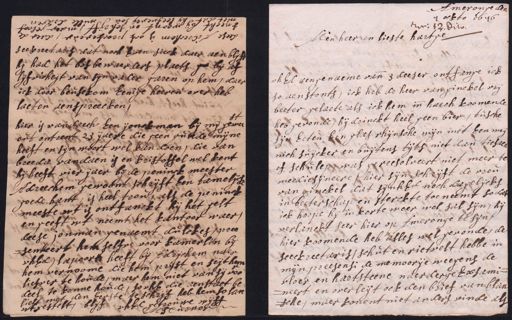 hier is vandaech Een jonckman bij mij geweest out ontrent 23 ijaere die geen queede mijne heeft en sijn woort wel kan doen, die van breeda vandaen is en kristoffel wel kent hij heeft vier ijaer bij de peninck meester Adreechem gewoont schrijft Een tamelijck goede hant, is heel trou, als de peninck meeste wt is ontfanckt hij het gelt en geeft wt neemt het kantoor waer, deese, onman genaemt dulckes, pree senteert hem selfve voor kamerlin bij uhEd, lapoorle heeft bij Adrijchem naer hem vernoome die hem prijst en seijt hem liefver te houde, maer hem niet van sij voo deel te konne houde, so uhE die aen staet be lieft met den Eerste te schrijf heb hem so lan uhEd getrouwe wijff wtgestelt, blijf M Turnor Ameronge de 5 den 7 ockto 1676 rec: 12 dito Men heer en lieste hartge uhEd aengenaeme vande 3 deeser ontfange ick so aenstonts, ick heb de heer van ginckel vrij beeter gelaete als ick hem inde haech koomende heb gevonde, hij drinckt heel geen bier, tusche sijn Eeten Een glas rhijnsche wijn met Een weij¬ nich suijcker en buijtens tijts niet dan tiesaen of schulep was gereesolveert niet meer te meediesijneere, hier sijn schrijft de vrou van ginckel dat sijn hEd noch dagelijcks in beeterschap en sterckte toeneemt so dat ick hoope hij in korte weer wel sal sijn, hij verlanckt seer hier op Ameronge te sijn, hier koomende heb alles wel gevonde, de seeckreetaris, schut en rietvelt hebbe in mijn preesensi de memoorije weegens de vloer en hartsteene naerdergeExsami neert en overleijt ock den brief van blan ¬sche, maer konent niet anders vinde als