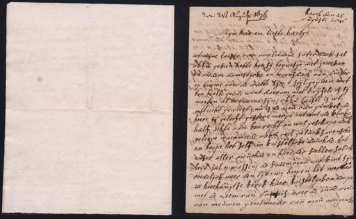 haech den 25 28 Augusti 1676 Augusti 1676 Mijn heer en lieste hartge wt mijne laeste van voorleedene saterdach sal uhEd gesien hebbe hoe sij begaesge met jeneken en verdere domistijcke en woonsdach van Amster op breeme overde watte sijn t seijl gegaen met Een heelle goede wint daerom niet twijfele of sij moeten al te breeme sijn, uhEd laeste is wt wttrecht geweest, nu is de vrou van ginckel de heere sij gelooft gistere merge ontrent de klocke ter half achte van Een recht en wel geschape doch geleege waenmeede uhEd veel gelucks wensche en hoope het self in kristelijcke douchde tot onser aller vreuchde en haerder siellen salich heijt sal op wassen, de kraem vrou ent kint sijn reedelijck naer den tijt, wij hoopen het overmerinde hoochduijtse kerck haer kristelijcken doope met de naem van Augnis naer de oude vrou van meuwen grootmoeder vande vrou van ginckel