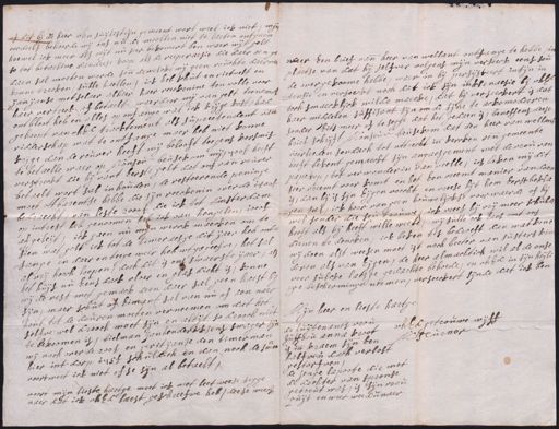 of dit bij de heer van Suijlisteijn gemeent wort weet ick niet, mijn oordeels behoorde wij ons nu de moollen niet te laeten ontgaen hoewel ick meer als oeijt nu seer bekomert ben waer wijt gelt so tot betaeline vandeese koop als de reeperaesie die daer aen ge daen sal moeten worde sonde dewelcke wij geen vruchte daervae konne trecken, sulle haellen, ick heb schut en rietvelt en ijan ijanse met selaer alhier haer reeckenine ten volle voor haer vertreck af betaelt waerdoor mij van gelt teenemal ont bloot heb en alles op onfange wat ick krijge kost, had gehoopt van uhEd tracktement als supreetendent vande ridderschap wat te ontfange maer heb niet konne krijge dan de reuver heeft mij belooft teegens korsmis te betaelle waer op Monseu beusekom mij700£ heeft verstreckt die hij vant Eerste gelt dat ons vande reuver betaelt wort sal in houden, de resteerende peninge moet ottbarentse hebbe die sijn reeckenin overde 1400f bedraecht, van leste 2000£ die ick tot Amsterdam op intrest heb genoomen heb ick van hengelen, 1000£ afgeleijt, ick gaen nu mijn werck maecken om te sien wat gelt ick tot de timeraesge dit ijaer heb ont¬ fange en daer en teege weer heb wt gegeefve, het sal al vrij hooch loopen, doch dit is ons swaerste ijaer, als het huijs nu Eens dack vloer en glasdicht is, konne wij de rest met gemack doen daer sal geen haest bij sijn, maer schut of Eimant sal van nu of aen naer hout tot de deuren moeten verneemen om dat het selfve wel drooch moet sijn en altijt so drooch niet te bekoomen is, tielman ijanhendericksens swager sijn wij noch over de 200£ en geritijanse den timerman hier int dorp 175£ schuldich en dan noch de smee voortweet ick niet of se sijn al betaelt, voort mijn lieste hartge moet ick met leet veese segge naer dat ick uhEd laest geschreefve heb, deese weeck weer Een brief vande heer van wellant ontfange te hebbe, in plaetse van dat hij selfver volgens mijn versoeck eens sou de overgekoome hebbe, waer in hij persijsteert intijn in tensie en versoeckt noch dat ick sijn inkeenaesie bij uhEd toch smaecklijck wilde maecke, dat hij verseeckert is dat haer middelen suffisant sijn om de sijne te ackomodeeren sonder Eits meer of te segge dat het gedaen is, beneffens deese brief schrijft Monseur beusekom dat den heer van wellant voorleeden sondach tot wttrecht inde kercken aende gemeente heeft bekent gemaeckt sijn angaesgement met de vrou van papekop, tot verwonderin van veelle, ick beken mij dit seer vreemt voor komt en het Een vreemt manier vandoen is, dan hij is sijn Eijgen voocht en vreese hijt hem Eerst bekla gen sal, ick hoor van geen houwelijckse voorwaerde of hij wel sonder die sou trouwe, ick vrees hij vrij meer schulde heeft als hij heeft wille weete, wij sulle ock Eens omt ons dienen te dencken, ick beken tis bedroeft dan watkone wij doen alst weesen moet ist noch beeter van susters kin deren als van Eijgen, de heer almachtich wil al de onse voor sulcke laesge gedachte behoede, en uhEd in sijn heijli ge bescherminge neemen, verseeckert sijnde dat ick ben Mijn heer en lieste hartge uhEd getrouwe wijff de luijtenants vrou M Turnor juffrou anna kroot is inde kraem sijn Een halfven dach verlost gestorfven, de jonge lapoote die met de dochter van spronse getrout was, is sijn vrou quijs en weer weedunaer