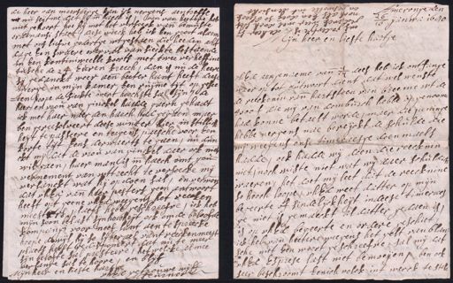 de heer van moersberge kan ick nergens aentreffe wi nu seijt me dat hij inde haech is, van van heetere heb niet gehoort hoe hij met het versoeck vande bewuste ordinansi staet, deese weeck heb ick Een groot alarm met ons liefve godertge wtgestaen die heeden acht dage Een swaere overval van sieckte bestaende in Een kontiniweelle koorts met twee verheffine tusche de 24 Euren kreech, dan is nu de heere sij gedanckt weer aende beeter hant heeft deese werge in mijn kamer Een ruijme tijt op gesee ten hoope de sieckte overt hoochste sal sijn, de heer, en vrou van ginckel harede gaern gehadt ick met haer naer den haech had gegaen maer ben gereesolveert deese winter hier in stillick heijt te passeere en teegens paesche voor Een korte tijt Eens derwaerts te gaen, nu dun ckt mij dat de vrou van ginckel daer ock niet wil gaen, haer man is inde haech omt gou¬ vernement van wttrecht te versoecke mij verlanckt wat hij op doen sal, en verwoort dat uhEd vande heer pesters geen antwoort heeft opt geene uhEd weegen het reecken meesteers plaets hebt geschreefve, ick heb mijn soon belast sijn hoocheijt ock om de beloofde kompangi voor neef lant aen te spreecke hoope dewijl hij so lijberael vant reeckenmeest plaets heeft gedisponeert dat nu te meer sijn belofte sal presteere, het welcke almee verlange sal te hoore, en blijf Mijn heer en lieste hartge uhEd getrouwe wijff M Turnor Ameronge den