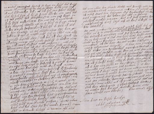 geleijt en is inde voorleedene weeck met volle verstant gestorfve laet Een bedroefde weeduwe met ses kindere naer die mij haermans b doot door haer brief heeft verwit ticht en haer kinderen in uhEd gunst seer reecke mandeert ick heb haer den rou weesen beklagen, vont se wtneement bedroeft, de heer van ginckel heeft becker aen sijn hoocheijt gereeckomandeert, diet wel niet toeseijde maer hem ock niet seer vreem van hem hielt, becker heeft ock sijn hoocheijt daerom aengesproocke, en inde haech bij sijn neef geweest die hem ock belooft heeft alles te sulle doen gelijck ock de heer van suijlle en bergesteijn, hij moet nu verwachte wat daer van sal koomen, de heer van ginckel heeft noch int koope vande paerde voor mij niet konne te rechte koome goije paerde sijn heeft dier en worde door franse seer op gekocht, en die wat aen gebreecke kan men voor geen gelt quijt worde, voor uhEd wit of gran paert met het dick been durfvense 5 rijxsdaelders bieden, wij moeten sien hoe wijt maecke konne daer