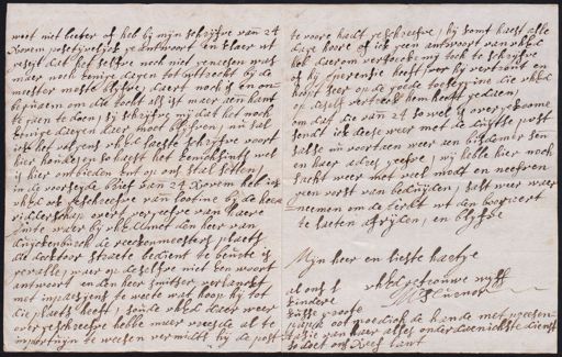weet niet beeter of heb bij mijn schrijfve vande 24 Novem posetijvelijck geantwoort en klaer wt geseijt dat het selfve noch niet geneesen was maer noch Eenige dagen tot wttrecht bij de meester moste blijfve, daert noch is en onbequaem om die tocht als ist maer aende hant te gaen te doen, sij schrijfve mij dat het noch Eenige daegen daer moet blijfven, nu sal ick het volgens uhEd laeste schrijfve voort hier houde, en so haest het Eenichsints wel is hier ontbieden Ent op ons stal setten, in de voorseijde brief van 24 Novem heb ick uhEd ock geschreefve van lootine bij de heere ridderschap overt vergeefve van haere Amte waer bij uhEd met den heer van duijckenburch de reeckenmeesters plaets die docktoor straete bedient te beurte is gevalle, waer op deselfve niet Een woort antwoort en den heer smitser verlanckt met in paesijens te weete wat hoop hij tot die plaets heeft, soude uhEd daer weer over geschreefve hebbe maer vreesde al te in portuijn te weesen vermidts hij de post te voore hadt geschreefve, hij komt haest alle dage hoore of ick geen antwoort van uhEd heb daerom versoecke mij toch te schrijfve of hij Aperensie heeft, ver hij vertrout en hoopt seer op de goede toeseggine die uhEd op deself vertreck hem heeft gedaen, om dat die vande 24 so wel is overgekoome sendt ick deese weer met de duijtse post salse nu voortaen weer aen bisdomer sende en haer adres geefve, wij hebbe hier noch sacht weer met veel modt en neefven geen vorst van beduijden, salt weer waer neemen om de Aerat wt den boogaert te laeten afrijden, en blijfve Mijn heer en lieste hartge al ons s uhEd getrouwe wijff kindere kusse groote M Turnor papa oot moedich de hande met preesentasie van haer alles onderdaenichste dienst so doet ons Neef lant