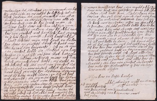 veertiendage tot Advokaet geproomeveert, en heeft sijn dispuijte en ooraetsie so lofflijck int pu blijck gedaen tot groot genoechge van al de grroofeloore en verwonderin van alle de toehoorders, van so Een jonck man, de Majoor heeft daer ock Een deftige proomoosi Maeltijt gedaen daer hij uhEd en de heer van ginckel wel hartlijck had gewerst en is hem beijde gemist, frits heeft uhEd plaets bekleet mijn neef lant en buloo sijn daer op geweest twas te kout voor den baron van herrevelt, ick en de vrou van ginckel hebbe die Maeltijt van haes konijne en patrijse versien dat haer mae tijt niet alleen versierde maer ock haer beurs geproositeert heeft, mij docht en ick schreef ock aende vrou van ginckel dat sijn onders en vooronders altijt bediende vant huijs geweest sijn dat men daerom wat bij haer most doen, en tis al heel wel geweest, die jon man heeft sijn tijtwe waergenoome wort van Elck Een gepree sen, vande gepreetendeerde peninge daer den heere raesfelt van heeft geseijt hoor ick niet Een woort meer van, maer tot wttrecht geloof ick dat uhEd noch weegens sijn leefvereij en andere equipaesie komt het welcke udachtich maecke of bij deese tijde niet dienstig waere te ontfange hoot gaen mocht uhEd sou daer over Eens aen beusekom konne schrijfve deesen dach heeft Eene Maddaleene van beerine Een rou brief over de doot van haer m an den welgeboor gehande heer jc han de kock van op pijnen, gesonde om aen uhEd te senden, die goet gedacht hebbe hier te honde de, maer kan niet afweese dees nieuijaers briefve van uhEd kintskindere weer te sende dit sijn van die te Middachte sijn hier moet groote papa alweer de beurs opprene tis al omt hebbe te doen, ick hoop uhEd nu al het gesonden goet sal ontfange hebbe tis hier Een seer vroechge winter die al Een maent geduert heeft en teegenwoordich Een seer stercke vorst ick laet alle dage inde grafte bijten en de duijfve voere theeft hier ock veel gesneuwt dat alles seer bebenaut, den heer van ginckel verlanckt seer naer sijn stalmeester is seer verleege hier meede blijfve Mijn heer en lieste hartge ps men seijt uhEd getrouwe wijff en dienen MTurnor dat het houlijck vande keur prins van brandenburch met de prinses van haenover voort sal gaen