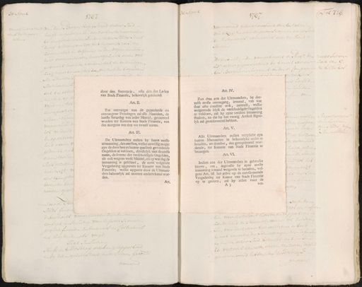 30 April 1787. van absente Schut ters by de exer citien van den Berger Krijgsraad dezer stad heeft ingevolge de aanzoeken te meermalen bij de getrouwste Leeden dezer Stads Schut tereij gedaan, om zoo veel mogelijk was, te zorgen, dat de beffening in den wapenhandel niet verminderde, maar op zulk eenen voet gebracht mochte worden, dat de onkundigen zich meer benaarstigden, om met de bequaam dan dat Ste Schutters statueeren, z door den Secretaris, ofte eén der Leden dat bij alter van Stads Finantie, behoorlyk getekend. nantie op de Art. HI. voordaan tot Tot ontvangst van de gegaaderde en der afwezig ontvangene Penningen zal alle Maanden, de laatste Saturdag van ieder Maand, gevaceerd aldaar tegen worden ter Kamere van Stads Finantie, van des morgens ten tien tot twaalf uuren. waarnemende rot verdeeld ArL. III. En op dat van De Oitmaanders zullen by haare eerste uitmaaning, den eersten, welke onwillig mogte heid worde va zyn de door hen in hunne qualiteit gevorderde Ongelden te voldoen, directelyk met deszelfs gedrukt, en A naam, de somme der verschuldigde Ongelden, cieren ter han als ook wegens welk Middel, en op wat dag de inmaaning is geschied, de eerst volgende Rots gezellen Vergadering opgeeven ter Kamere van Stads Finantie; welke opgaave door de Oitmaan¬ haar rieht: vo ders behoorlyk zal moeten ondertekend wor¬ den. een exlmplak ArE. boven en bene worden opget Door de Hee Stads finan d' Averhoult voorgedragen zijnde, eene consept instructie voor de provisioneele gequalificeerde uitmaners en Collecteurs enz luijdende als volgd. Inak Iusertie Heeft de vroedschap dezelve geapprobeerd en bij deze gearresteerd, en de Heeren Gecomm voornoemd Fol 718 178 30 April voornoemd geauthoriseerd die te laten drukken en aan de provisioneele aangestel de Uitmaners, collecteurs enz: ter hand te stellen wederom zijnde voorgebracht de Req=e den raakt het ver 23=e dezer gepresenteerd by Gerrit Achter zoek van G: =bos Borger en sergeant onder de Compagnie Achterbos verzoek als eerd heeft de in handen Art. IV. van „fine Zoo draa een der Oitmaanders, by des- zelfs eerste ommegang, iemand, van wat staat ofte conditie ook, aantreft, welke weigerende blyft de verschuldigde Ongelden te voldoen, zal hy zyne verdere inmaaning omm: welke Raport wegens staaken, na dat hy het voorig Artikel stipte¬ lyk zal geobserveerd hebben. de inspectie putie in spec van Stads desen Art. V. erale desen Sie werken en al het zelve Alle Oitmaanders zullen verplicht zyn hunne Manuaalen in behoorlyke ordre te cte ordre had houden, en dezelve, des gerequireerd wor- dende, ter Kamere van Stads Finantie te hadde gezien bezorgen. Art. VI. aan de schik un tot het Indien een der Uitmaanders in gebreeke bleeve, om, ingevalle by zyne eerste de in acht inmaaning iemand weigerde te betaalen, vol¬ akt mitsga gens Art. Al het zelve op de eerstkomende Vergadering ter Kamer van Stads Finantie in zijn op te geeven, zal hy zelve voor de ver- A3 veten heeft de tot de inspec =tie voor derzelver moeite en rapport, en in zonderheid de Heeren Gecomm: tot het defen sie voor derzelver veel vuldigen arbeid, en wel aangelegde Schikkingen ter defensie en nutte dezer stad bedankt en zijn hun Ed: verzocht aan alle, welke ten zelven dagen gemaneuoreerd hebben, des vroedschaps genoegen