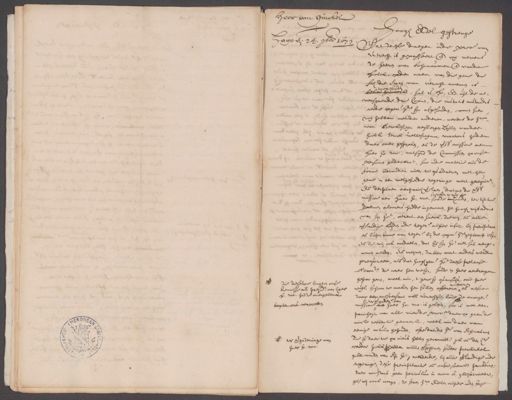 Heer van Ginckel Hage den 24 november 1673. die deselve buijten onse kennisse aende president van haer Hoogh Mogende hadde overgelevert layte on vraoden ter vergaderinge van haer Hooch Mogende Hoogh Edel gestrenge Wat deese daegen inde provintie van Utrecht is gepasseert ende wij nevens de heeren van schonouwen ende vanden Hoolck,opden naem van die gene die sich de Staten van Utrecht noemen is toegegesonden, Sal U Hooch Edele uijt de nevvengaende drie Copien, die mutatis mutandis aende opgemelde heren sijn afgesonden, connen sien wij hebben met den anderen, nevens de heren van Berckekeijn aersbergen zuijlen vanden hoolck strick nellesteijn, martens heden daer over gesproken, ende de voorseijte missive aen haer hooch mogende, mitsgaders de commissien op onse personen gedecermeert, soo inde materie als de forme, bevonden niet te quadreren met het gene in een welgestelde regeringe wert gerequiereert Ende derhalven eenparich verstaen, dat men de voorschreven missive aen haer Hooch Mogende te rug te houden, ter tijt toe dat men alvorens hadde ingenomen, het hoogh wijs advis van sijn Hoocheijt ontrent een saeck, die wij, ende allen verstandige, Luijden inde regering alher insien, bij precipitant ende buijten forme van regering, bij de opgemelte heeren gepleecht te sijn ende die wij oock oordeelen, dat bij sijn Hoocheijt niet sal aengenomen werden, Ende meijnen, datter wat anders werdt gerequireert, als dat hoogh gemelde Hoocheijt deese pretense gecommiteerden die naer hem toe sijn, soude in haer aenbrengen gehoor geven, veel min, t'gene sij quansuijs, omme haer vuijl schoon te maken hem sullen offereren,accepteren ende alsoo door een misverstant vande utrechtsen bode de voorgemelde missive ter vergadering van haer Hooch mogende is gelesen, soo is met eenparicheijt van alle vier de provintien daerop geen de minste reflectie gemaeckt, veel min daer van eenige notulen gehouden, ofte dat den Heere van Schonauwen die sij daertoe op nieus hebben gecomitteert ick ende den Heere vanden hoolck # ter vergaderinge van Haer Hooch Mogende hebben willen verschijnen sonder preallabel goedt vinden van Sijn Hoocheijt, werdende, bij alle verhandige inde regeringe, dese precipitante ende onfatsoeelijck poceduren daer nochtans geen periculum in mora is, gedesavoueert gelijk wij oock morgen, de seven heeren Edelen alhier inden Hage