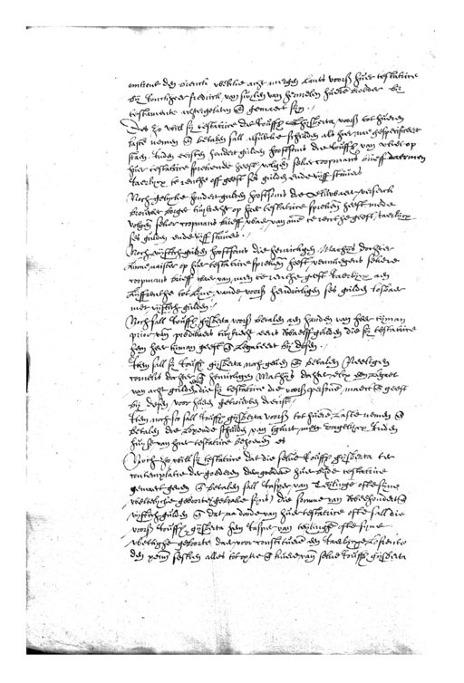 omtrent den brenck welcke acht mergen lants voors huer testatrice bij jonckheer fredrick van suylen van hermelen huere broeder bij testamente achtergelaten ende gemaect sijn. Des zoo will sij testatrice dat Rouffr Ghysberta voors tot hueren laste nemen ende betalen sall alsulcke schulden als hier nae gespecificeert staen. Inden eersten hondert gulden hooftsoms die rouffs van vliet op huer testatrice sprekende heeft volgen seker coopmans brieff daermen jaerlycx te renthe off geeft ses gulden ende vijff stuvers Noch gelycke hondert gulden hooftsoms die verluwaert verserck brouwer borger tuijkrecht op haer testatrice sprekende heeft mede volgende seker coopmans brieff, waer van me te renthe geeft, taerlijcx ses gulden ende vijff stuvers. Noch vijftich gulden hooftsoms die henrickgen Mathijs dochter Linne naister op hier testatrice spreken heeft vermuegens sekere coopmans brieff waer van men te renthe geeft jaerlijcx aen Lijffrenthe tot Lijve vande voors hendrickgen ses gulden losbaer met vijftich gulden Noch sall Jouffr gysberta voors betalen aen handen van heer tijman prior vande predikaers tuytrecht eens twaelff gulden die sij testatrice hem heer tijman geeft ende Legateert bij desen. Item sall sij Jouffr gijsberta noch geven ende betalen Neeltgen cornelis dochter ende heinckgen Mathijs dochtel elcx een legaet van acht gulden die sij testatrice die voors personen maect ende geeft bij desen voor hueren getrouwen dienst Item noch soo sall Jouffr gijsberta voors tot huere laste nemen ende betalen die lopende schulden van tgunt met dagelycx inden huyse van haer testatrice behoeven es Noch zoo will sij testatrice dat die selve rouffs gijsberta ter contemplatie der goederen dergoedere huer bijde testatrice gemaect geven ende betalen sall Jasper van Teijlinge ofte sijnen weltelycke geboorten gebrake sijns) die somme van tweehondert ende vyftich gulden ende dat na doode van huer testatrice ofte sall die voorß touffr gijsberta hem tasper van teijlinghe ofte syne wettighe geboorte daer voor constituere een jaerlijcxe Lofiente den penn sestien alles tot optie ende kuere van selve Jouffs gijsberta