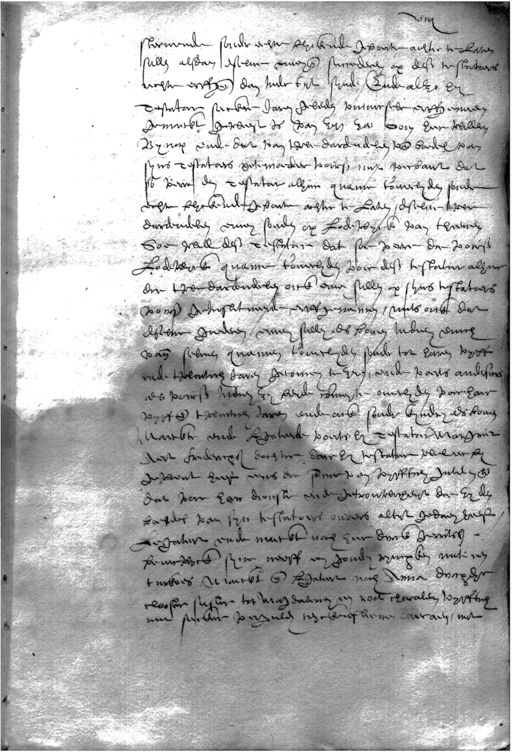 stervende sonder echte blyckende geboute achtie te laten sullen alsdan deselve eenen ende succederen op desen testateurs nichte erffgenen dan inde tyt synde Ende alzo hy Testatar sackie jaren geleden univirsele erffgenaem gemaeckt geweest is van zyn zal oom het willen Byncx ende dat van Edele dardendelen van boedel van syns Testateurs petemoeder tooirs uut toecbant dat so verre den Testator alhier quame toverlyden soude echte blyckende swarte achter te laten, deselve twee dardendelen ennen souden op Lodewyck van thienen Soe hall dese Testitar dat soe verre du voirß Lodewyck quame tovechden voir desen testatrice alhier die twee dardendelen oick enne sullen op syns testateurs voirß ende instituerde erffgenamen, mits oick dat dselve goederen eenen stellen als boven indien enich vande selven quamen toenclyden soude tot haren vyff ende twintich jaren gecomen te zyn, ende voerts andesins als voirs indien zy beyde connen te overlijck den van hair Item ende twintich jaren ende ack soude kyndien als boven rechte ende legateerde voirts hy Testatar Manwier 2 fridericxs dochter dair hy testatrice wel een by trent heeft eens die somme van vyfftich jnte 3 ende dat voir hair dienste ende getroutlicheyt die zy den boedel van syn testatoirs ouders altyt gedaen heeft testateert ende maeckt noch hier dirck gerritsz beincxlyck syne neeff een gouden ryncxken mit een turkoes maickt ende legateert noch Anna duapden clooster sullic tot Magdalenen een noot choralen vyfftich mit seekere vergulden nyckriefkenen daeraen, met