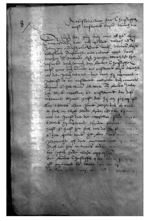 Attestatie voor heer Christoffel roest toosbroeck buyte utrecht Op huijden den xiiij Julij anno lxv.c lxiii Compareerden voor mij openbaer notaris ende getuygen onderschreve Dirck Jansz woenende buyte tollesteech Tuytrecht oudt ontrent xxxv jaren tuijchden ende verclaerde byden gerechte waerheyt the versoucke vanden vrunden van broeder Christoffel roest prior inden convente tot Oestbroeck buyte utrecht als dat geled ontrent drie jaren hy comparant geweest is tot Oostbroeck arbeyende inden convents bogart ende holt cloven all waer een broeder Peter van vlyck cappellaen tot Oestbroeck van desen comparant begeert heeft, dat hy een schaep oft Lam twelck aldaer inck weijen inden bo cart een seel om tlyff wilde bynden, ende hem tselve over die graft daer die cappellat, stonde wycken twelck hy comparant tsynder te ceerte heeft, ende heeft het seel over die ende heer Peter track het Lam doort over gevraecht off daer nyemant meer Doff dat hem nyemants andere toe gebeden hadde Seyde expres Dat broeder Christoffel op voor ofte nyemant ter werlt