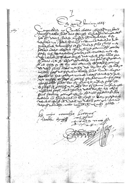 Het Utrechts Archief, archieftoegang 34-4, Notarissen in de stad Utrecht 1560-1905, inventarisnummer 7, Jacob van Herwaerden, Protokol, met indices, 1575-1612, 1584-1585 mrt