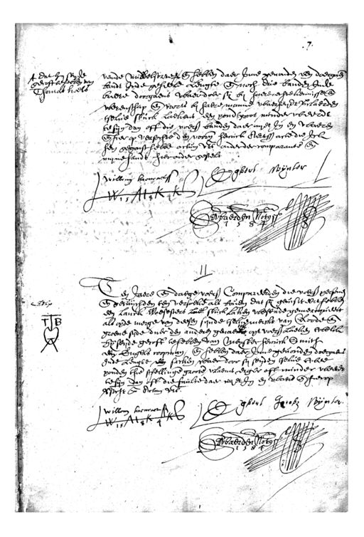 Het Utrechts Archief, archieftoegang 34-4, Notarissen in de stad Utrecht 1560-1905, inventarisnummer 7, Jacob van Herwaerden, Protokol, met indices, 1575-1612, 1584-1585 mrt