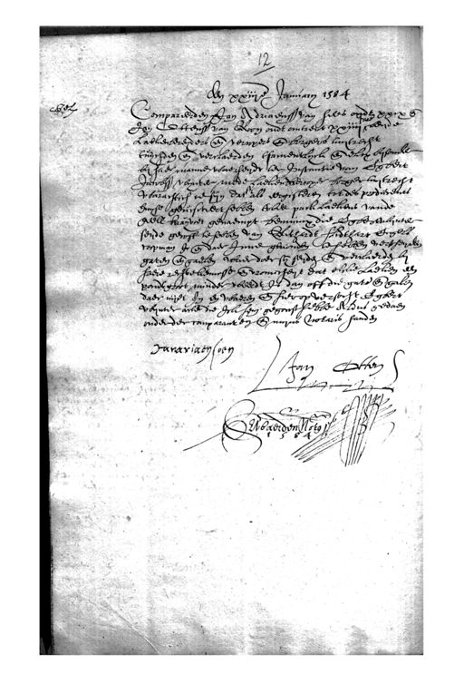 Het Utrechts Archief, archieftoegang 34-4, Notarissen in de stad Utrecht 1560-1905, inventarisnummer 7, Jacob van Herwaerden, Protokol, met indices, 1575-1612, 1584-1585 mrt