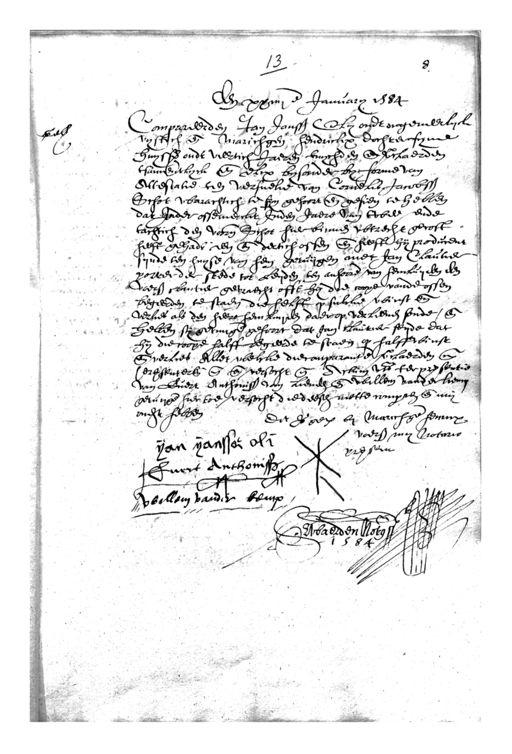Het Utrechts Archief, archieftoegang 34-4, Notarissen in de stad Utrecht 1560-1905, inventarisnummer 7, Jacob van Herwaerden, Protokol, met indices, 1575-1612, 1584-1585 mrt