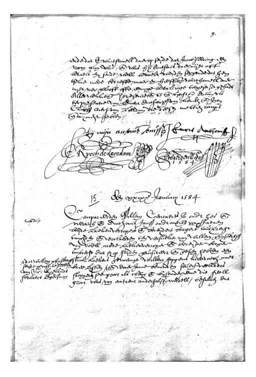 Het Utrechts Archief, archieftoegang 34-4, Notarissen in de stad Utrecht 1560-1905, inventarisnummer 7, Jacob van Herwaerden, Protokol, met indices, 1575-1612, 1584-1585 mrt