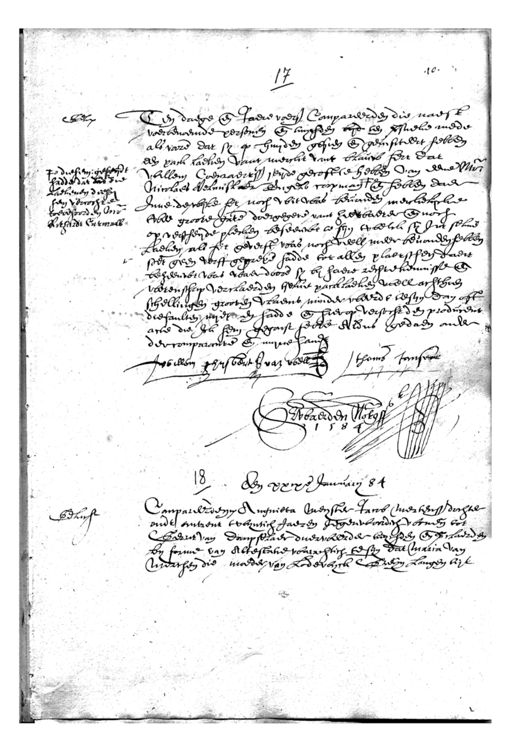 Het Utrechts Archief, archieftoegang 34-4, Notarissen in de stad Utrecht 1560-1905, inventarisnummer 7, Jacob van Herwaerden, Protokol, met indices, 1575-1612, 1584-1585 mrt