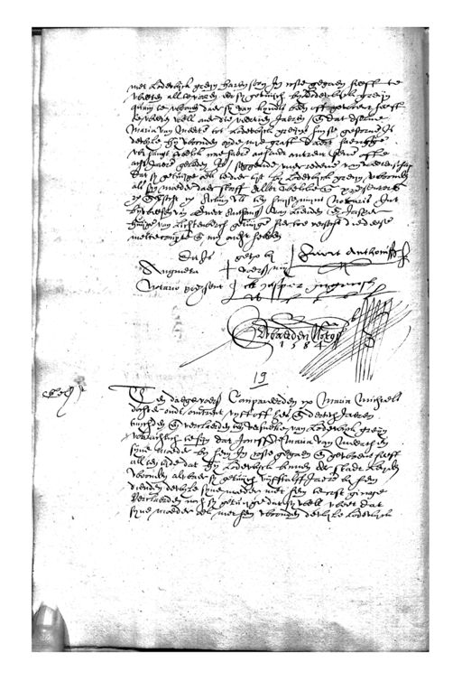 Het Utrechts Archief, archieftoegang 34-4, Notarissen in de stad Utrecht 1560-1905, inventarisnummer 7, Jacob van Herwaerden, Protokol, met indices, 1575-1612, 1584-1585 mrt