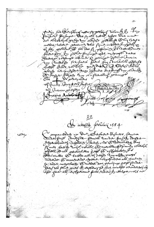 Het Utrechts Archief, archieftoegang 34-4, Notarissen in de stad Utrecht 1560-1905, inventarisnummer 7, Jacob van Herwaerden, Protokol, met indices, 1575-1612, 1584-1585 mrt