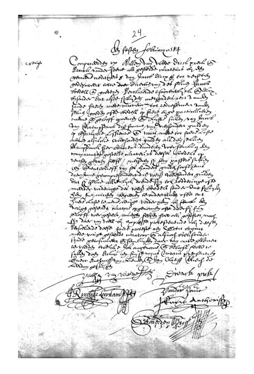 Het Utrechts Archief, archieftoegang 34-4, Notarissen in de stad Utrecht 1560-1905, inventarisnummer 7, Jacob van Herwaerden, Protokol, met indices, 1575-1612, 1584-1585 mrt