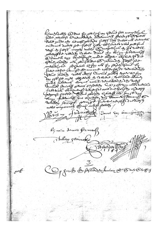 Het Utrechts Archief, archieftoegang 34-4, Notarissen in de stad Utrecht 1560-1905, inventarisnummer 7, Jacob van Herwaerden, Protokol, met indices, 1575-1612, 1584-1585 mrt