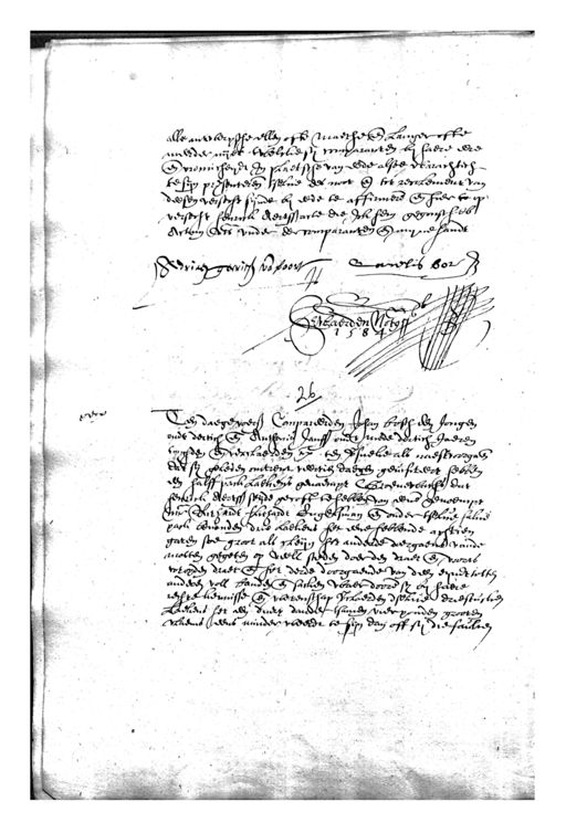Het Utrechts Archief, archieftoegang 34-4, Notarissen in de stad Utrecht 1560-1905, inventarisnummer 7, Jacob van Herwaerden, Protokol, met indices, 1575-1612, 1584-1585 mrt