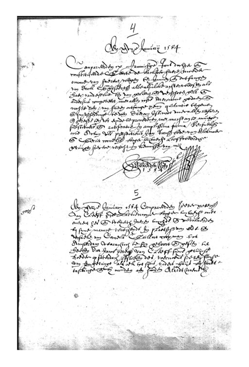 Het Utrechts Archief, archieftoegang 34-4, Notarissen in de stad Utrecht 1560-1905, inventarisnummer 7, Jacob van Herwaerden, Protokol, met indices, 1575-1612, 1584-1585 mrt