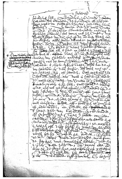 ende voor d'ander helft opde hare vrienden vijf vaders sijde opde voorn. Neeltgen Cornelis Hollandde Pieter ende succederen sall. Behoudens „ van Cornelisz ende hollandde des belevende, de lyftocht off usufruct selve portie van Neeltgen Cornelis, haer leven lanck geduren. En waert dat de voorn. Cornelia ofte Balthasar Brouwer sonder naelaich van blyckende geboorte als vooren nae hen Compt staet Sullen d'selve van die eene op de anderen denven ende succederen, alles sonder detractie van de trebelliant portie, die den Compurant was probib. evende by desen. En beyde sterven d sonder geboorte soo sullen sall all t' gene op hendiden in voor voor twee gecomen is, alsdan erven ende succederen, opde naer vrienden van haerlider moeders zijde ende Vencken voorts in cas de voorn. Pieter van Cornelis hollander t' eniger tyt in cracht deses tot de usu van haerlieder susters portie, als voren noch te gerechticht zijn, off worden, dat nochtans het capitael vandien, aenstonts in hande ende onder de macht ende gewelt van Cornelia ende Balthasar Brouwee comen, en sijn sall, om den hoveel de bladinge ofte usufract uyt twe reijcken; Sonder dat de voorn. Pieter ende Van Cornelisz oft hare gemachte tichde, ofte d'administratie van haer het int minste en sullen vermogen sijn Comparants nael avenschap. boedel off goederen te immiscer¬ off onder winden, int zeheel off d'selve dee d'selve daer van tot aliter excluderende ende expresselijck uyt sluijten ende soude ooc ijet contrarie dese sijne dispositie met woord en is wercken, directel. oft indirectel. ie mogeyd in rechten oft dade buijten by pene van te verliesen t' effect vant voorsz. usu fruct Seclaerden voorts uijt sijn Comparant boedell, ende goeden de E: magistraet der Stede mortfoort de Regenten vant mannenhuijs aldaer, daer hy in Besteet heeft, ende voorts alle and alsoo hij de selve syne nae wenschap gehelick stelde in handen van zijn bovengenoemde geinstitueerde erffgenomen. En authoris