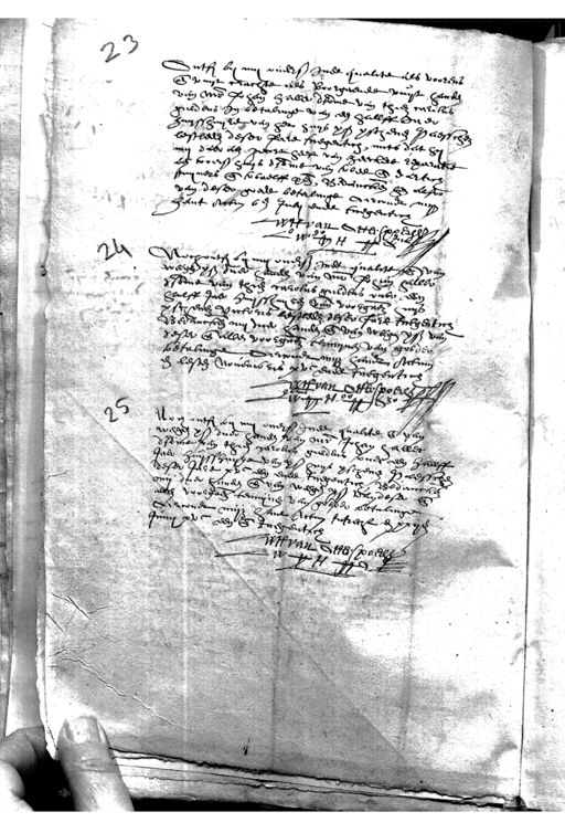 Ontf by my ouders inde qualite als voorens ende uuyt crachte als voorgaende vuyt handen van mr Johan haller dkome van thien carolus guldens in betalinge van een hallff daer huyshuyre van het huys voors. yschenen Paesschen lestleden deser Jare negentich, mits dat hy my daer aen gecort heeft van heeckere reparatie aen voers huys daeromme van twee ende dartich stuyvers ende twaelff pen. Bedancken hen alsoo van deser goede betalinge Garcondt myn hant Actum v en July ende tnegentich Noch onts by my onders inde qualite ende wan¬ weegen yss duer handen van mr Johan aller zomme van thien carolus guldens rube een halff Jaer huysshuyren vande voorgaende huys perschenen victoris lestleden deser Jure tnegentich Bedancken my daer handen ende van weegen voors. van deser ende allen voorgaende termynen van goeder betalinge Oercouet myn handt Actum lesten novembris xvc ende tnegentich vijff van Otterspoer ƒ van guldens in betalinge van een halle r huysshuyve van het huys voors. verschenen Paessche lestleden deser Jare negentich, mits dat hy my daer aen gecort heeft van heeckere reparatie aen voers huys daeromme van twee ende dartich stuyvers ende twaelff pen. Bedancken hen alsoo van deser goede betalinge Carcondt myn hant Actum v en July ende tnegentich weegen yss duer handen van mr Johan aller zomme van thien carolus guldens rube een halff Jaer huysshuyren vande voorgaende huys lesten novembris by mij onders inde qualite ende van perschenen victoris lestleden deser Iure inegentich Bedancken my duer handen ende van weegen voors. van deser ende allen voorgaende termynen van goeder betalinge Oercoper myn handen Actum „ halle bris xvc ende tnegentich Int van Otterspoere vuyt handen gul. en carolus ende de versocht voorens doch onth by my ouerst Inde qualite ende van weegen voors. duer handen van mr Johan hallet de somme van thien carolus guldens over een halff jaer huysshuyze van voors. huys verschenen Paesschen deser Jare xvc een ende tnegentich bedancken my daer handen ende van weegen voors. van deser ende allen voorgaende termijnen van goeder betalinge Gercondt mijn hant Actum Intrecht den xxiiien Juny xvc een ende tnegentich UH van Otterspoederen #