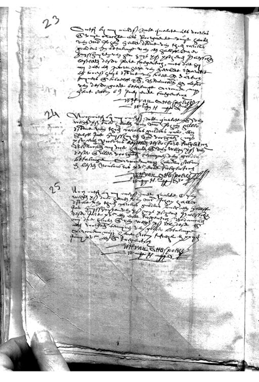 Noch onts by my onders inde qualite ende van weegen yss duer handen van mr Johan aller dselve van thien carolus guldens ruer een halff Jaer huysshuyren vande voorgaende huys verschenen victoris lestleden deser Jare tnegentich Bedancken my duer handen ende van weegen vss van deser ende allen voorgaende termynen van goeder betalinge Oercondt myn handt Actum ende lesten novembris xvc ende tnegentich artf van Otb: spoere — ende uuyt crachte als voorgaende vuyt handen van mr Johan haller dkome van thien carolus guldens in betalinge van een hallff Jaer huysshuyre van her huys voors. yschenen Paessch lestleden deser Jare tnegentich, mits dat hy my daer aen gecort heeft van zeeckere reparatie een tooers huys daeromme van twee ende dartich stuyvers ende twaelff pen. Bedancken hen alsoo van deser goede betalinge Gircondt myn hant Actum v en July ende tnegentich Noch onsen by ons anders met qualite ende van weegen yss duer handen van mr Johan aller de somme van thien carolus guldens ruer een halff Jaer huysshuyren vande voorgaende huys verschenen victoris lestleden deser Iure tnegentich Bedancken my duer handen ende van weegen vss van deser ende allen voorgaende termynen van goederen betalinge Oercondt myn handt Actum ende bris xvc ende tnegentich Elft van heeft spoer 1 12 Otterspperschap # gul. 4. — alitem als voorens den 3en Ontf by my ouders inde qualite als voorens ende uuyt crachte als voorgaende vuyt handen van mr Johan haller dkome van thien carolus guldens in betalinge van een hallff Jaer huysshuyre van her huys voors. verschenen Paesschen lestleden deser Jare tnegentich, mits dat hy my daer aen gecort heeft van zeeckere reparatie een tooers huys daeromme van twee ende dartich stuyvers ende twaelff pen. Bedancken hen alsoo van deser goede betalinge Gircondt myn hant Actum v en July ende tnegentich Noch ontf by my overs inde qualite ende van weegen voors. duer handen van mr Johan hallec disome van thien carolus guldens over een hallff jaer huijsshuyse van voors. huys verschenen Paessch deser jare xvc een ende tnegentich bedancken om daer landen ende van weegen voors. van deser ende allen voorgaende temijnen van goeder betalinge Gercouer mij hant Actum intreck den xxijen Juny xvc een ende tnegentich U.H. van Otterspoechs #