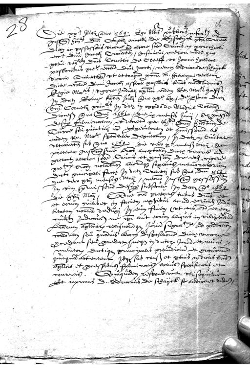 Die xx.en Maij anno 1569. Ego Mus publicus infra.t ad Justan. honnes. Domini Cornelii arnoldi de Eijswijck XVIC trauwen diocz ac possessoris vicarie ad altare sche Crucis in parochiali ecca domini Jacobi Traiecten, insinuavi meliori medo quo potui veijlibus duis cornelio de Cleeff et Joanni hallero pastoribus prete ecclesie duii Jacobi, necnon Adrianode schaijck viccario Traiecten. ut et tanquam XCIII M. hieronynu verlevin dicte ecclesie domini Jacobi assisti pastoris litteras noudtionis Regie Matis, vigore judulti axtici eidem Re. Mati geessi in datum Rome kalende Julij anno xvc lx.c de persone dicti den. Cornelij priulis. In dat in oppido de Madril Toletan diocesz anno Domini 1561 die ix mensis Junii, Actum processum desuper salivinatum et decretum per Rdum dum hustum de Turre schi quintini etc Executorem et quissarium ab eadem Re. Mate. specialiter deputatum, in datum in civitate ultraiecten sub anno 1569. die vero xa mens maij, Ac preterea instrum sive litteras acceptation dicte vicarie ad pretacte altore selve Crucs et pnisionem de eaen, vigore pre.tam litteram noisdition. aliorumque superius memoratorum dicto principali facien in dat. Traiecti sub anno Domini 1669. die vero xvii mensis maij, necuo instrum possessionem in van premissorie desuper subsecutie in dato anno 1569 die xviij Maij. Que omnia pretacks tribus dius et et eorum civilibet in faciem exhibui ac ad eorundem indu¬ bilatam notitia deduxi in eum finem (ut eis et et eorum cuition judicaui) ne ipsi aut eorum aliquis in vilipendum Lrarum aplicarum reliquorum quam Jurius suprator. ad presentationem collonem seu quamvis aliam Dispositione dicte vicarie procedant seu procedat, neque in dictor jurid et muni mentorum dictique principalis preiudicium et gravamente quicquam attentent idque sub censis et penis in dictis litteris apticis et processibus fulminatis latius specificatis et contentis. Quiquidem responderunt uti sequitur Et inprimis d. Ariamis de schaijck se audireet vide