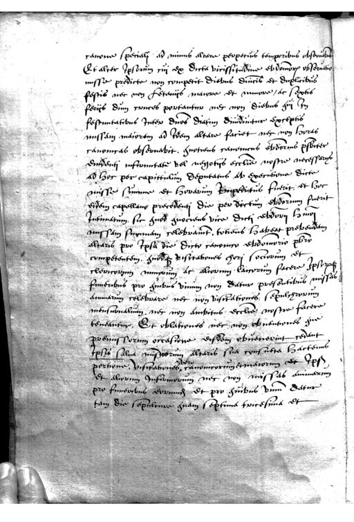 cavone speciali ad minus altere perpetius temporibus observement Et alter ipsorum ciii ex dicta vicissitudine eodomorum observatie misse predicte non competit diebus dincis et duplicibus festis nec non Letanijs maiore et muure, ac septis ferijs dum cruces portantur nec non diebus ziij in festuntatibus inter duos diatum dimiduntur exceptis missam maiorem ad idem altare faciet nec non horas canonicas observabit. quotiens canonicus ebdorius psbiter eindenti infirmitate vel negotijs ecclesie nostre necessarys ad hoc per capittulum deputatus ab executiene dicte misse summe et horarum Impeditus fuerit: et hoc eidem capellans precedenti die per dictum ebdormm fuerit intimatum sic quod quociens vice dicti eodory huiusmodi missam suijmam celebramt. totiens habeat prebendam altaris pro ipsa die dicto canonico ebdomonio presbitro competentem quodque visitationes chori sociorum et clericorum muurum ac aliorum laccorum facere ipsorpq finieribus pro quibus unum non datur presentibus missas annuarum celebrare nec non visitationes sepulchrorum mensurualium nec non ambitus ecclesie nostre facere teneantur. Et obligationes nec non obventiones que premissorum occasione disdem obvenerint cedant ipsis salva mistrorum alteris sua consueta hactenus portione Visitationes iure canomcorum et maiorum et ipsi et aliorum infirmorum nec non missas ammarum pro funeribus eorundem et pro quibus unius datur tam die sepulcure quam septima tricesima et