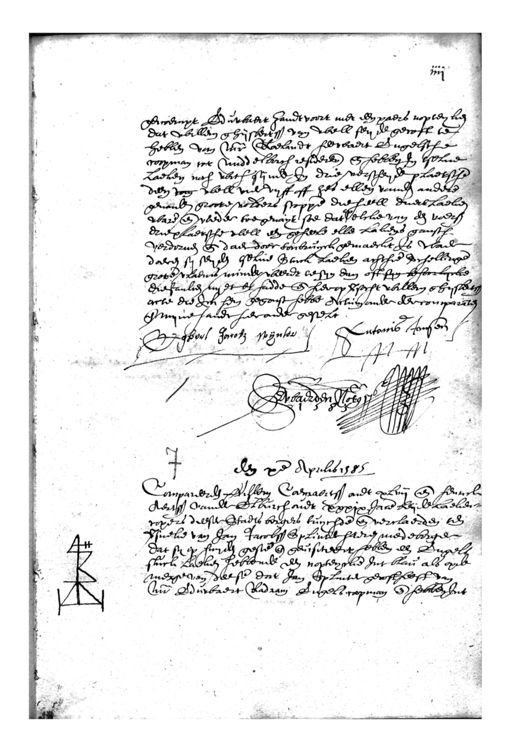 Het Utrechts Archief, archieftoegang 34-4, Notarissen in de stad Utrecht 1560-1905, inventarisnummer 8, Jacob van Herwaerden, Protokol, met indices, 1575-1612, 1585 apr.-1586