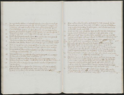 12 13 14 15 16 13 18 19 20 21 In mijn tabacx kelder, salueerdeede de Backers komende t'onsenhuysen Betaelden tot Poocks onsevecke : / af bij Sr. de groot ala montagene met L. Poelwijc opt oostindischuijs jinge actien getransporteert 4 P.I. 2. mall ter kerke. 1 avons met 50 m Adrianus ala montagne by den Fransen Ambassadeur te gast, met Pr de groot. Cralingen-Beringan bij I Woog al mijn tabac. was Cousijn vander brugge bij mijn C.I.V. Met de Backer voortseerecht, Is pracvader nae den eten samen geroockt oomsacobus bij ons op een kaertije I.P.T. Ter beurs, en boven, daer ad St. lamine sprack, furn hout by mijn, en met de backer met busius lamine a la montagne geconsuleert 3 P.I. Met een maeckelaer in den tabacxkelder, en met mijn vrou inde banc van leninge, haer sachtermiddags leydende inde comedie In mijn tabacx kelder en furnhout bij mijn Mijn confraters als montagne tracterende I. Harmans bij mijn, en met de Backers tot duytste gast. als montagne bij lamine, en busius daer consuleerden. Quamen s' nags ten 2. thijs, 5400 ps bij moij marij tegast met de Backers, daer eens dansten sochtens te 2. a. 3. een pijpken 1 P I a 2. v. 3 ¶ verlands tot, en t'ontkijn bij mijn: brackt debacker swager susters in de comedie Opt stat huijs hamme gesprochen, des mi ons schrijver, vertrock gerard debacker naer Antwerpen, met jacobtijmensen, mijn vrou susters en nichten / inde comedt saavons met cornelis I.P.I. (1) 3 22 23 24 25 26. mei 26 27 29 30 Met neef de willem bij vaeder op tresorij daer iets versocht beyde advocaten tot ousent. Mor marij en dochters moij van Alblasserdam met nichije druijvesteijn by ons te gast, met debacker tot busius en brochten samen moij tuijs Neef savis bij mijn, ter beurse sprae Cornelis debacker tot vander voorts tussen donderdack, en vrydach's nags grootestorm. S.S.W. Alle myne (onfve boven bij vader sijnde onpasselijc: met mijn vrou tot neef barnars te gast, met moij mary, van aelblasserdam met de backer I.P. van koning, en dubre, door weverman genooijt, met Sr. cornelie G.W. 3 P I bij van ghoov, daer eens voochten, bij busius Bij weveringen op de Clevenius doelen te gast bij broer I.F. Hinlopen daer Tafel, reael, twijc fabritius mede waren 3 a 4. P T wierd 14. het verlij van enige bruijden genomen idesnuons by myn en monsr Konings bij lamine, en busius met sr cornelio, bij oom Jacobus tegast tracterende sijn confraters daert Switen verkerfde I Ter beurse sachtermiddags met J.T. Hinlopen vader besocht, en tot poocken met fonteijn, met schatter bij onsentabaek I CIV Met broer Coymans ter beurse, en de notaris vande ven, ons van wegen desimons insinuerende bleef sr cornelio s' nags uijt, latende te 2 uren weten met schrijven besig was. Vangelijcke Carel voet sijn swager van wesel by ons te gast. S prack mehr vanden keuvel mijn, met oom Josef bij notaris badel samen met carelvoet, en swager by moij marij spreckende van sijn achterstal vande kas G. W. Met debacker bij lamine tot Grotenhuijse tegast Alde warelt schaek tot onsent, over onse aen hem verkofte indico, tot de Quelen met de Advocaten in de backens saeck I.L.I. 3
