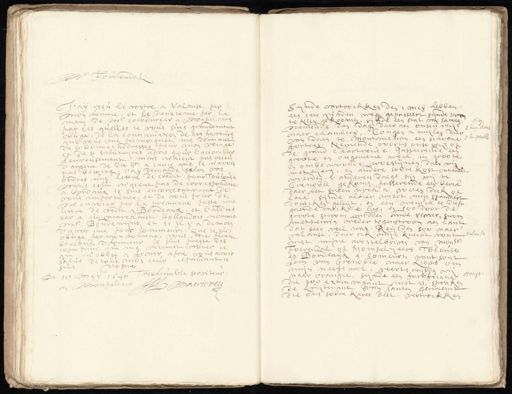 Mr. Lourendal J'aij recu le vostre a Valanse per¬ mon Somme, et le deuxieme per le main de Mr. Coerdurier a Monpeliers par les quelles je vous suis grandement obligé, de la continuation de vos faveur que vous me tesmoignet, me donnant de si bonnes witnesses pour mon voiage et de si saluteijres advis pour l'accompli¬ heureusement, mais n'aient pas receu d'argent de dit Sr. a cause que je n'avoi pas besoing, j'ay demande selon vos ordres une lettre de credit pour Toulouse mais celui n'aient pas de correspondant a bordaux je suis encorecontrant de vous importijner, et de vous prier de m'envoier per la primière poste un lettre de credit Bordeaux, et l‛addre ser a un marchant Hollandois nommé mr. Boudewijns, et 51 il ij a demoi d'avoir une pour sommeurs. Que je suis obligé, per mon somme, vous me ferez suis presse de baucoup d'honneur. Je com-pani qui me viermet visiter ce qui m' oblige a finir apre vous avoi salue de tout mon ceur, cepandant je vostre sins De 18 Mey 1641. Treshumble serviteur van Monpeliers. Hr. Maerseveel Sijnde vertrockken den 1 meij hebben een seer quaden weg gepasseert sijnde savon te Nicy gekoomen, sijnde een stat van savoie nemende den dag daer aen onsen reij„ naer clamberij, Tongen 2 mijlen daer van daen te montmelian een schoone fortres. Nemende voorts onse reijs op de grand chartreus e. Passeerende een groote en ongemene wech in groote en ombewoonde woestijnen, daer wij met eijeren, en andere sobre kost onthaelt wierden. S' anderen daegs sijn wij te Trenoble gekomen. passerende een berck daer het sneen noch 2e voeten dick op lack, sijnde alhier wiert mijn spaniaer drincken geleijt, en een wenich te dief gaende raeckte los, en soo door de groote stroom midden inde rivier, swou¬ niettemin weder tegenstroom aen lant dat seer veel was. Reijsden soo naer valanse, daer ick myn Knecht vont met mijne wisselbriven van monsr. Toerendal op Mompelijeers Tolonse en Bordeaux S. Someurs, want sont lem van Grenoble naer Lionis om mijn neefs wil, voorts reijsden wij naer orangie, sijnde een fortificatie die soo extra vagant niet is, spraken de luijtenant van santen genaemt die ons sobre Kares deel. vertrockken Nieo 2 may. cham 3 in. grenobe Valans Orange.