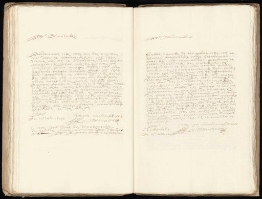 Mr. Blaulaken Nademael ick van hun ben om den 20: deser te vartreckken sal desen dienen om VL. te Advarteren, dat soo het mogelijck waer, ick de eer van re¬ compani soude mogen hebben, mr. van Honques Swager Gotiers. heeft vE. 150 guld: gesonden, en mits dat ick borck Een sal hij vlij. ( want hij heeft geen ordre meer) dan noch 100 guld. gecren¬ Daerom haest v. den tijt is kort, want ik en kan niet langer wachten, ver¬ Mts soekende dat vE. de groetenis aen che vael gelieft te doen, en prinsipael aen Mr. Bogaert, die ic kopt hoogst van „ bedanck voor de gesonden copije vande kan mr. verels cabinet dat soo t krijgen, sal mijn groote vrintschap geschieden, en doen blijven Mr. Den 15 Juli 1649. Vostre: tres humble serv. ff v waerse veel Croet mr. Poul den dronkensmij saluta meo nomine Dom: d' Dander Mr Bogaerts brief is al bestelt Mr. vanderscheur Hebbe lanck de eer gehat van UE te kennen, hetwelke mijn beschaemt maeckt, v.h. niet eerder geschreven te hebben, doch ick ben versekert geassureert te sijn, van mijne goede wille, en consequentelijck dat sulks niet sal dienen, om U. te offenseren verte enigen Wensende vorders dat ick dienst kost doen. Ben van mening du van hier den 20 deser te vertreck Re¬ broeder U.H. naer sommier waer ick sal vinden, hebbe den winter te Geneven gepasseert, en voorts de plaetsen op den grooten tour. Nademael vE moeder mijn enig gelt geleent heeft, versoeke ik van mijn het selve te sommir te willen laten weten, op dat ick sulks ve Broeders soude goet doen aen de mrs t M. daer voor een hoorloge senden van loopende van v.h.arkent te word¬ voor een van sijne minste dienaren wachtende altijt op vE commande in qualiteijt van UE. onderdanigen dienaer Mr a la Rochelle. Dh. 18e. uiter 1641