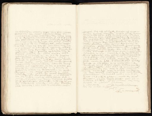 te beduijden, voorts sagen wij het casteel DURETAL aen mons.r le marechal de Hombrecht, maer niet dan den tuijn te sien en is quamen savons laet a la flesche een stat daer een groot je buiten klooster is, waer wij oock sagen het huijs vanden - marquies de la VARREYNE. waer niet dan den tuijn te sien is. hoe dat mij de 25 savons te SAVLMVR quamen, aldaer ick door mijn Knecht, UEd 2 brieven heb gekregen, den 1. vanden 4 october den 2 anderen vanden 10. Inde welke UEd. qualijck te vreen is, in 2 a 3 posten Gt. geen brieven gekregen te hebben gelieft te gelooven, sulks mijn fout niet te sijn, mijn selven niet genock kunnende verwonderen, waer den brief vanden 26 septembr: en den 8. october ge- bleven is, indewelke 2. 3. brieven in geslooten waren aen. Mestartich. 1. aen neef Rotgans. 1. aen mons. van Horen 1. inde Ed. de nime voornaem¬ welck ick ste tijdingen heb geschreven, en is buijten mijn weten, soo ick inde selve heb gemanqueert in mijn debvoir sijnde oock opt hoogst bedroeft, n'ed sig in soo een onse keren saeck (als het bestellen van brieven) soo seer te onstellen, nade „ - mael die of qualijck bestelt, of opge houden kunnen worden. Hebbe oock met gemoniqueert UEd. te schrijven, den Kas gesonden te sijn, vande welke ick te onoor Dat deselve een registerken heb gesonden noch niet en is bestelt, is mijn fout niet, want kon met beter doen, dan die inde handen van mijn koopman te bestellen, hebbe hem daer over geschreven doch noch geen antwoort. De 3 Rycken daelders vanden degen, ben ick schuldig sijnde bedroeft u ho: daer over moijelijck gevallen te sijn, twelk ick eensdeels door gebreck van gelt, anderdeels door slofigheijt heb vergeven, doch prinspael nademael mijn swager mijn de 300 guld: niet en gaf, biddende UEd. sulks gelieft te vergeten, en te weten dat ick met al mijn kapt niet anders hoeck de effectueren, als UEd te complaceren. mijsepaerden sijn wel te pas, mene mijn vriesken wel te sullen verkoopen en een mons. schrijver hier niet lanck gearriveert, dewelke mede uit begin naer 17ALIEN gaet, met een mon¬ - Farrara sijnde vande graef seer be¬ quame borsten. Ses naem van mij Hospes is mon Sauman A. S A V L M V R Blijvende ondertussen. den 31 octob. 1648 G: d: H. v. Maerseve