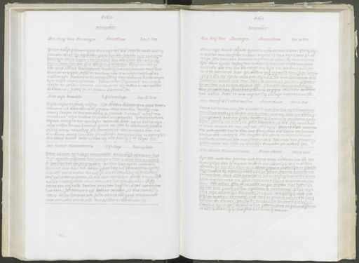 Ao. 1677: December Aen moeyj van Amerongen Amsterdam Den 5: Dito Weder t huys gekomen synde soo is myn wel beh uwEl Ed. miss. van dEd: passato, waer uyt wy hebben gesien dat het uwelEd niet onaengen soude syn, om te staen over den doop van het kindt het welcke wy' tegens Carst (soo het Godt belieft te gemoet sien. Wy syn verobligt om niet alleen dese present: dinckelyck aen te nemen, maer daer beneven te seggen uwel Ed. voor dese eere voor altydt verplicht te sullen syn versoeckende in gevalle sy van intentie soude mogen syn, selfs overtekoomen, als dan Haerlogement ten onsen Huyse te willen nemen als wanner wy nader occasie sullen hebben om VwElEd. te kumen betoonen Etc Aen myn beminde S: Gravenhage Den 18 Dito Beyde myne dochters sullen UEd: hebben bekendt gem wat diver, tissemt ick haer hier heb gegeven, waer door haer verblyf een wenig langer in dese quartiren is geweest: En dewyl monf. Tin mermans myn nevens de al hier aenwesende gedeputeerdens tegens morgen ter maeltydt versocht heeft: soo en sal ick myn niet eerder de eere kunnen geven om UEd. de handen te kusser als op aenst maendag als wanneer ick van intentie ben, om S ochtens vroea (soo het Godtbelieft) over Haerlem te verreys het werck van de vrde en doet sig miet qualyck op blyve, Etc. Aen suster Timmermans S Gr: Hage Den 19: Dito Desen avondt in s Hage arriverende, soo schryf myn soon, dat mijn waerde huyjsvrou dese morg en ten xuren seer voorspoedt is verlost van een jongedochter, sonder daer uyt te verstaen wanneer men haer den christelycken doop sal presenteren, syn de even wel van intentie dat sulcks aenst: woensdag, of Donderdat wel sal kunnen wesen. Ick heb van myn devour geacht te syn UEd sulcks te notificeren met intentie om afte wachten UEd: ordres ten reguarde van den presisen dag die ick wil verhoopen dat door UEd presentie sal werden vereerdt. Ick ben veroblig UEd te bedanckenvoor het polit, en seer obligant tractement met intentie om in alle voorvallen te bethoonen Etc Ao. 1677 December Aen Moeij van Amerongen Amsterdam Den 20: Dito Alsoo myn waerde huysvr: gisteren ochtendt ten 2 uren (Gode sy lof is verlost van een frisse dochter, soo heb ick van myn devoor geacht te syn UEd: daer van kennisse tegeven, en alsoo wy van intentie syn, haer aenst vrydag den schristelycken doop te presenteren soo soude het ons een besondere eere syn soo wanneer sulcks in UEd: presentie kost geschieden: Eoog ingevalle door UEd: in dispe (gelyck als wy uyt de miss van myn schout met leet wesen heb, verstaen) van de eere van uwEl Ed. presentie quamen gefrustie te worden. soo souden wy met UEd: : permissie) van intentie syn, haer de naem van Constantia Eliana te gegen. willende verhopen dat sulcks uwel Ed: niet ongevallig sal syn, ondertassen Etc. Aen monf. Wil van der Molen Amsterdam Den 21 Dito Desen sal dienen om UEd: bekendt te maecken, dat myn beminde op voorleden sondag ochtendt ten 10 ceren, met vry wat stribbeling en ongemack van een frisse dochter is koomen te verlossen: synde beyde (Godtlof, in redelycke goede dispositie, Ick heb UEd. mniss: vand 12: deses, nevens die van juf. Bax wel onof. waer ophaer aenstonde een antwoordt door de bode van Gornichem heb laten toe koomen soo dat het ormodig is UEd. wegens het addres te inportuneren sullende ondertuschen, naa presentatie van onse seer gedienstig gebiedenisse aen UEd: en desselfs beminde, en verdere EtC. Aen suster TTimmermans Amsterdam Den 21 Dito Uyt UEd: miss: van gisteren met regret verst hebbende, dat het UEd onmogelyck was de nieuwe dochter ten christelyck, doop te helpen optereren, en dat het haer niet onaen genaem soude syn, in gevall myn dochter by representatie sulcks quam waer te nemen soo salmen dan met UEd permiss: op aenst vrydag daermede voor gaen, met intentie om haer Constantia Eliana te noemen, ten ware UEd andere gedachten soude mogen hebben: naa de welcke wy ons seer garen sullen reguleren, de verlossinge (gelyck myn soon myn abusivelyck adviseerde) en is soo mackkelyck niet toe gegaen, maer ter contrarie, met veel ongemack, en stribbeling volbracht hoewel (godt lof, de moeden en dochter sig redelyck bevinden: die ick wil verhoopen dat Godt de Heere in gesonrheydt, en in alle schristelycke deugden sal laten op wassen