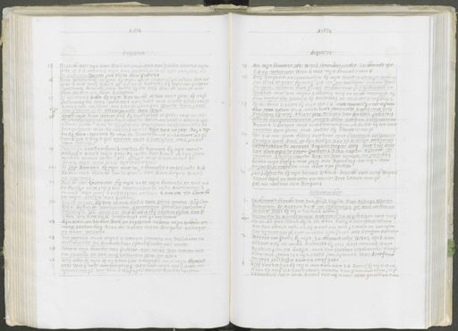 11: 15: 16: 17: 26: 21: 22: 23: 24: 25: 26: 1 18: A 1684 AUGUSTUS: Besocht van myn soon Reael en vrou, was van Keulen savons myn Gast: op SH vertrock myn soon Cosephus: met syn oom Josef na Ioe bemster quam Jan Elias van Goudes: Dom: Westerhof en vrou by myn, met commelyn in den Hortne op de B. met neef Schot af en na H vereerde hy myn een giassen catolrium. Besocht conf. Hudde synde sieck besocht van sr voer haer dochter, en haer swagerin De vaendrig schot by myn, was nicht Albras onse gast by conf. guldewagen eens vervarst van daer met s'conp sleet, enal sondt een miloen aen van Beuningen Wierdt Piter Jansl waegdrager op de recommand van Nett Smid met Dom: Westerhof by Van der Put te gast met mons. by van beuningen van daer met de Maior, en stadtsbaasen in kleene jacht naa de Weesper en Muyerpoort inspecterende de fortificatien met de chaloep voor de deur van mons. Duyn uyt en by hem, nevens de maior. Dorrevile, en Vickkevoort een gl doorhem thuys gel vereert met 4 patrysen van Jonkor van keness: Capiteyn Van den Broeck en den hr. Barnars by myn mons. Debruyn smid myn gast By Hudde door Boreel in syn carol aen den Hortus medic: gel: aldaer met sevenaereen gl. quam myn soon Josef uyt de bemster De juf. Romans by myn met myn beminde 2 mael in de Nil S achter mid besocht door de Heeren van Maersbergen, Boreeb en vrouwen Den hr van sevenaer by myn met myn beminde te voet nal de berebyt met Josephus vertreckkende in de Maerse veense s in conp van neef Van der gysen en soon samen te baenbr in myn barlyn naa Goudest S mid: te gast by den maerschalck van Abcou nevens, Suylen Rosa, Mydrecht, van dinteren, Amerongen Geroblus, van der mot Sipesteyn: Tel Heemste Both: en neef Van der gysen ten 8: uren met hem na H sondt daer eni ge miloenen Myn soon, en dochter Reael onsegasten nevens myn schout en mons. Van den Berg: Besocht van de neven Rotgans: salinger en haare vrouwen Soo vertrock met myne 2. soonen Joannes en Balthasar in Hillebrandt na Amsterd, daer (Godt lof)alles wel vondt Kuam mijn beminde van Goudest: van nicht Bax vereert met een cacatou en van neef Valckenier met een haes Neef Aboo by myn op de R: door Leti t' huysgel met myn bemind in de Wesk in de voorbereyding. van daer met neef Schot toe synent een gl. door hem t'huys gel. vereerde Reaelde cacatot 1 31: 3: 1: 25: 28: 14: 2: J3 1: A 1684 AVGUSIVS Met myn beminde in de Wistk: communiierende s achtermid: op t Sh: en weder in de Westk: met myn beminde naaH Neef Rotgans, en commelijn bij mijn s mid met mijn vroue Jan Elias te gast by neef Six, en Jan Hinlopen: nevens Reael en vrou, mevrou van Goens en haerman, juf. Van der Stel en dochter met dito myne kinderen neef en nicht Munters by haer moeder bes: samen by Maersberg en vrou in t sterfhuys De nichten vissers by myn opt sH met commelyn tot mynen hem wat saden van Mauritius vererende s midd: met neef Hinlopen by neef Aboo te gast nevens den Ambass: Joelkrae alle de burgemeesteren mons. Aboo schepen Valckenieren Bentis. van daer met van beuningen, en Hudde by Six sienl mevrou van Goens met Hudde by lesectre eeng Op t S:H int groot besoig van daer met Castrecom: Valckenier en myn soon Reael in syn barlyn naa de Nisluys in specter Ondertussen de nieuwe Duyvendregtse weg met den heer van Vlooswyck de secret Geelvinck: Rosa, suylen. Mydrecht. St Martin Amelis waerdt Both: en Dom: koenen, en Josep hus sondt myn barlyn met Josef naa Baenbrug, om myn vrou en Jan Elias te haalen met haer naa Goudest: Jan Kuijper Etc by myn die eens schonck: Besocht van neef Botgand Oosterwyck en vrouwen, en mons. Roos samen een gl gaf een miloen aen Rotgans September S achtermid: besocht door den hr D Suylen: Rosa: Mydregt Nederst Dinteren, St: Martin Boch en Oosterwyck, gaf haer miloenen mons. Netto by myn die eens schonck Soo wierdt de Maerse veense watermol en afgebrocken, met neef en nicht van Oosterwyck in haer barlyn naa Amsterdam Aen den hortus medicus af van daer met J. T. Hinlo en van tyen tot synent een gl van mevrou Van Goens met kreeften vereerd Mevrou Van Goens by myn s achtermid in de Westk: Opts: Hen aldaer neef en nicht Munters by ons haer nevens van Beuningen. en Satyn, met een sorbetie regalerendebrage haer met joannes tuys sondt Jan Coymans wat kreeften en was solikoffter savons onse gast 1 Neef Van der Put by myn, met hem nae t S:H: Boreel by myn met hem by neef Six daer nevens mevrou van Goens haerman iIns Van der stel een T met Boreel tot my nont wat gecollatiom