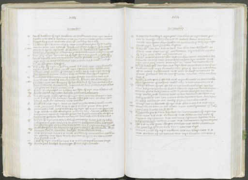 5: A 1684 December Den hr Bacherus by myn s ochtens en sachtermid: met myn vroues 19: Sophia in de Westk: van daer met Jan Coymans tot synent nevens Reygersberg eens vervarst besocht van den Pens: Hop S ochtens opt oH in een besoig met Van Beuningen by de dochter 11: van den Heer van Mydrecht smid in t heere logem: op de mael Zas van de 17 synde Mydrecht: St: Martin, en Bacherus Et. daermede stack van der weyen aldaer enige dierwerken aen scheyden ten iul Dom: Kley Sliger, Barnars Etc by myn op t SHen smid: te gast by 12: den hr Benthes: nevens de heeren van de gerechte neef geblrinck myn soon en secret Valckenier ten 10 uren na H: sachterindop Sk in het groot besorgne Neef Schot by myn met hem nae t S: H: s mid: met myn beminde 13: Sophia Reael en vrou nicht Van Egeren, en haer dochter uten aldaer conf. Hudde by ons ten 11 uren na H met myn carosby f. Vickkevoort samen in den Hort medicus: Aten By Jan Coyman den hr van sevenaer, en neef Schot by myn: met hem naet S:H: 14: Smidd in t Heerelog tracterende de heeren ter Admiraliteyn 20: van daer met Van Beuning by den hr klenck by den stadhouder Van Vrieslandt Haersholte, sevenaer en Dom Van derweyen: aldaer een glen een p. ten 10 uren na H 15: Mevrou Heringcaspel. en schepen Hinlopen by myn met hudden in 27: Rhedt wordt myn soon Balthas secretaris ordquarie Den advocaet De hartoge Etc by myn op t SH ineen besoigne door 16: Lechi t huys gebr Domine cantor myn gast van mevrou van klenck met een kannetie most vereert S ochtens met myn vrou, en dochter in de Westk: s achtermid 17: met jounnes in de Niwek opt S:H in t groot besoign Revenaer, Lethi, neef schot Ete by myn. op t SH in een groot led 18: met Hudde i het Hevelogem nevens Dom: cantor schout en schepenen van Vrek. Coop van groen Etc Regulerende het bergloen der vondt goederen quam sevenaer daermede ten 8 uren naH Deteus by myn ons wat cabeliau vereronde naet S.H. by schep 19: Valckenier te gust nevens de heeren schepenen, hare secretanss van Beuningen en Van der Voortaten, ten 6 uren na Huys blyvene nicht Rotgans en Adriana Coymans s avons biy ons eten: wor 150: Harmen Paulus bestelder van het Bennebroecker veer 20: met sevenaer naet SH met Hudden af en met hem sachterm int Herelog met Bors dito sevenaer en syn soon een oesterd ten 8 uren na H 21: Lethi by myn met hem naet S:H: van daer met hem naa Huys ht wordt Jan Soudyck Bierdrager Recom myn beminde 20: 27: 28: Fus 20: 30: 21: 22: 23: 24: 25: A 1684 December De Sweedt s middags myn gast door hem in myn caros gel: aen de Berebyt vertreckkende in Hendrick Rutten in conp van nicht van Egeren, haer dochter, en van den berg die by mynlogen vondt myn soon Josephus buyten Besocht van den Heer st Paul. den heer van Wellandt en kloeck met haer een al. van dorssen, myn schout en soon by myn met haer een Frontimiack van de maerseveen se bode met een haes vereert: vertrock in Hil lebrandt in conp van mons. Bassuimpiere syn vrou Etc met myn soon Josef van de roetangel te voet na ouwerkere van de Voetangel van daer met mijn caros en constancia na Ams s ochtens met myn beminde in de Westk: op t Sh met Hudden af en naa H s achtermid met alle de burgemeesteren de secret. Geelvinck Bos Etc tot synendt. s avons met een roes naa H S ochtens in de Westk: op t SH met myn beminde en soon en het heerelogement op schepens mael. ten 3 uren samen naa H capiteyn Wildvan by myn, op t SH: en naa den Amstel sluys van daer met Burgemeesteren en Stadtsbasen te voet naa Funen, inspet terende stadts Portificatien, en de vryvende bateryen vandaer met stadtsjacht nevens Bors, en den President Hinlopen naa Schreyers hoeck vandaer nevens Hudde, castrecom Bors, Hinlopen en schep Valckenier int Herelog gegeten ten 7: uen naa H monf. Van Vickkevoort by myn met hem nae t SH met myn beminde, en soon in een sletie naet Herelogement op schep mael ten 3 uren na H exces Reygersbergen, Witsen, Repelaer, en Timmermans by myn met hem naet SH met Hudden af met Hudde en Castrecom: by Leseutre wyn proeven: daer Timmerm. Coymans, Repelaer, Bors Schep Valckenier mede quamen: met Timmerm tot mynent een praeg Op t S:H in het groot besoigne vandaer met Hudde, en castrecom int Heerelog op de executie ten 11 uren naa Huys mons. Lechi by myn s ochtens met een sletye naet S:h met Hudden af en savons met myn beminde in de West K:
