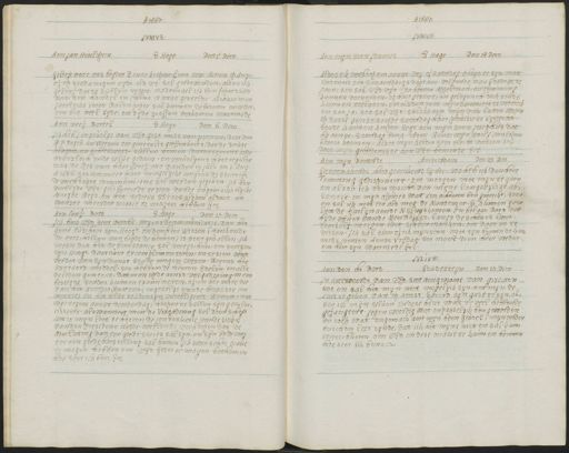 A 1687 JUNIUS: Aen Jan Hinlopen 1: S Hage Den 5 Dito Gelieft voor ons beyjder Rinte koopen f 1000 Oost Actien op Angul of op soodanigen tydt als UE. sal goedtvinden, alsoo ick geloof datse sullen rysen, nademael ick ben aepersuad Dat den handel in china is vast gesteldt alwaer men jaerlycks 10000. Balenpeper sal kunnen de biteren en weder om soo veel syde, en sijde stoften vervoeren waermede Aen neef Boreel SHage Den 6: Dito Ick heb ( ingevolge van UEd gest: miss vangisteren, door den R. P: Fagel. en Witsen ter generalit geeffectueert, dat de seeuse Hlagers, en schreuwerst sullen nemen contentement in de voorslach in de selve gedaen, en vervolgens haer regulen naa de Res van haer Hoog: mo. van den 19. juli, en 1 Ang A 1686. soo wanneer haer vangelycke wegens de socetept de verhoopte communicatie sal werden gegeven. Ick ben verblydt UEd: gelibereerdt te sien. van de ongemackkelycke Haegse Reys, en het tedieus straetslypen aldaer en wenste meerder ocasie te mogen hebben Etc Aen conf. Bors S Hage Den 17: Dito Ick ben UEd seer verobl. wegens de communicatie, van het gene tuschen syn Hoogt. en den heer Witsen (raeckende De verschillen van beyde de hooven) is voorgevallen. Ick meen dat het de bienseance sal vereyschen, om voorgen syn Hoogt, daer over te complimenteren, en te sien wat verder van syn dienst soude mogen wesen. Wegens het extraord middel soo hebben de heeren Edelen, en alle deleden gemeent, dat men opde aenst: vergadering, in een besoigne souden kunnen examineren, of, en hoe verre dit van het Noorder Auartier (in gevolge van de bewuste con ventie) in het selve souden syn verobligeert. Waeromtrendt wy, tegens aenst donderdag, hoopen te sullen syn geeseler Cisseert als wanneer men de vergadering sal doen scheydt het is myn leet te hooren de contenuatie van de sieckte van den President Hudde willende verhoopen dat de aderlating van een goedt succies sal syn, en syn Ed. de wey tot een goede harstelling sal banen Ick wenschte ocasite te mogen hebben om UEd. Gestr te mogen bethoonen hoe seer ick ben Etc. A 1687 JUNIUS Den 18 Dito Shage Aen mijn soon Joannes Alsoo ick verhoop om aenst vrij of saterdag thuijs te sijn met intentie om s maendaegs daer aen volvende naa Goudest te gaen: soo sal UEd. uyt de heeren Appelman, en Temming kunnen vernemen, of haer gesont, en gelegench oock soude kunnen toelaten, om als van met myn darwaerts te vertreck en soo jan soo sal UEd: sulcks aen myn vrou laten weten op dat se aenstaende saterdag haer provisie te Uytrecht soute kunnen koopen. segt aen myn soon Josephus dat hy aenst: saterdag Een 1/2 aem Rense wyn van J Hinlopen laten koomen, alsoo myn kelver seer slecht versien iss Voet myn gebiedenisse aen UEd. beminde Etc. Den 23: Dito Amsterdam Aen myn beminde Gisteren avondt hier geariueert synde, soo heb ick den heer Temming gedisponeert., om morgen met myn te gaen en alsoo ick ten opsicht van myne langwylige ab' sentie in myn affavres wat ten achteren ben geraeckt; soon en sal ick niet eer als met de Maersemer s. kunnen gaen laet de barlyn aen de N. Sluyskomen. En belast Bart dat hy de vyver van de Meerhofste, langs de schoutslaen door lulf morgen laet schoen maecken, om daer in te vissen. Ick sal sien of ick myn soon met syn beminde kar mede nemen Aenst vrydag, soo moet dien heer weder om hier syn waermede Etc JULIUS Goudesteyn Den 10 Dito Aen den hr Bors In antwoordt van UEd. seer aengename van gisteren soo en sal het myn niet mogelyjck syn, om myn de eere te geven van op aenst suterd syn gast te syn, ald soo ick myn selven in dese hitte wat te veel hebbende gefatigeert. jegen woordig wat onpasselyck ben geworden en oock wat ongemack aen myn been gevoel, myn onder tuschen leet synde, dat ick het myne niet en sal kum contribveren: om UEd in dese occasie te kunnen beoonen hoe seer ick ben