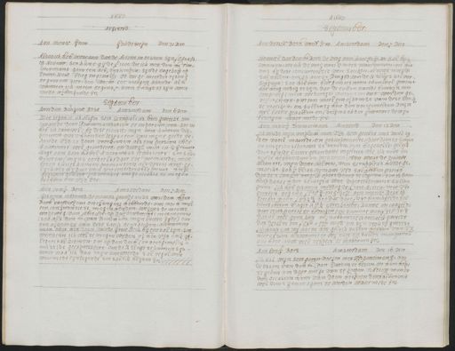 A 1687 Augustus: Aen mons. Grim Goudesteyn Den 31 Dito Alsoo ick heb verstaen dat de Actien in oosten syn f 550951 op Novem: soo kunt gy de f. 1000: die ick met den hr Tim mermans gemeen heb, verkoopen, synde ingekoft op Primo Nou Edog in gevalle UE. enige meerder rysing tegemoet siet, soo wacht tot morgen avondt als wanneer ick meen tegens 7: uren thuys te syn waer mede afbreckende Etc. September Aen den Burgem: Bosa Amsterdam Den 6 Dito Niet tegenst: ick altydt seer Scernpuleus ben geweest om imandt door Recommandatien te in portuneren, soo en heb ick evenwel ( by dese occasie) myn niet kunnen dis, penceren, om thoonder deses, een van myne goede be, kende UEd. te doen voorkomen als een persoon in de Anatomie wel geverseert, en dewyl men in s Graven Hage een seer habil Anatomius requireert: soo sour de men (myns oordeels, daer toe niemandt: met beter sucies kunnen promoveren als desen heer. ge, luck als hy daer van seer considerable preuus heef gegeven gehadt. Ick wenste enige occasie te mogen. Hebben om UEd Etc Aen conf. Bors Amsterdam Den 7 Dito Gisteren nademid: de nevens gaende miss van den heer Both Van der Eem ontfangen hebbende, om noch mael een conferentie te mogen houden, wegens de nevens wageweg van Abcoude, op Duyvendrecht (metententie Isoo als den hr van Benthem myn laetst syde) om een afkomst van dese saeck te maecken, als wanneer men over het doen van de Grote Reck by een sal syn, soo wenschte ick wel te mogen weten of het UEd oock ge legen sal koomen, om op den dach (in voorgemelte= missive geexpresseert. aen de N sluys te kunnen syn= waer naa ick dan myn antwoordt sal reguleren waerede eijndigonde soo salick blijven Etc. Huttte A 1687 September Aen den H. Roth van d Eem Amsterdam Den 7 Dito Hoewel dat den hr bors de verg van Haer Ed Gr Mo sal by woonen, en ick de verg van 17 moet waernemen, en het ons by dese concurrentie van saecken, al wat moeyle sal vallen, om op aenst Dingsd aen de N: sluys sal ver schynen: soo hebben burgemeesteren evenwel gemeent het hoog nodig te syn, dat de tollen van de bewuste niet wageweg (net wedersyts contentiment werden ge, repartieert, om een mael een afkomst van dese saeck te maecken, en sullen sy haer den voorgemelten Dings wel laten gevallen. en (volgens ouder gewoonte de wyn besorgen waer mede Etc. Den 13. Dito Aen monf. Timmermans Amsterd Ick vinde myn verplicht met UEd. seer geeerde mis vand 2 der voor l maendt, en gesurpreneert, door dien se schint en enige consideratie te nemen, een bagatelle, gelyck daer syn de laetst gesondene vogelties, die ick met en soude hebbenduru en presenter, ten ware de nauwe aliantie, myn dient Halven, min scrupuleus hadde ge maeckt. soo f. Elias Coymans UEd sal hebben gesecht dat de 2 canari voogels apart dienen te logeren, soo is daer hoop dat se haer somtydts wat divertissement sullen geven. Ick heb gisteren middag de f 1000 Actien, met UE. gimeen tegens ƒ 5054. ingekoft. aen mons. Rost op October voor ƒ539/ soo dat daer f 1240 banckgeldt sal overschiten d'agio a 5/ gereckendt, komt in casgeldt voor iders portie te bedragen een summe van ƒ 915:13:0 dat al wel gaen kan myn absentie is oorsaeck geweest dat deselve tot ƒ548: a 550 niet en syn verkoft geweest Ick hoop tat wy haest het geluck sullen hebben van UE hier te sien als wanneer wy niet en sullen manqueren om haer met veel respect te bethoonen Etc. Amsterdam Den 16. Dito Aen Confr Bors Ick sal myn seer garen voegen met UEdsentiment, om de ossen van den hr van Switen te besien, en hem hop te geven om daer enige van te koopen, nadien men in vers occasien hem van doen heeft, en derhalvenoock wel dient gemenageert te worden waermede Etc.